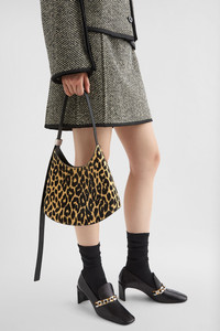 Small-sized printed leather shoulder bag with metal jewel buckle, curved base in contrasting leather and embossed Jil Sander logo Details - adjustable leather shoulder strap with metal jewel buckle - inner flat leather pocket with blind embossed Jil Sander logo - magnetic button closure - curved base in contrasting leather - nappa lining - leopard printed calf hair - 100% calf hair, contrast 100% calf leather - made in Italy - StyleID: J08ZH0062P8576272