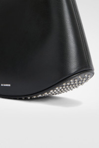 Small-sized leather shoulder bag with metal jewel buckle, curved base with metal studs and embossed Jil Sander logo Details - adjustable leather shoulder strap with metal jewel buckle - inner flat leather pocket with blind embossed Jil Sander logo - magnetic button closure flap - curved base with metal studs - nappa lining - embossed Jil Sander logo - 100% calf leather - made in Italy - StyleID: J08ZH0062P7191001
