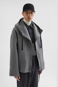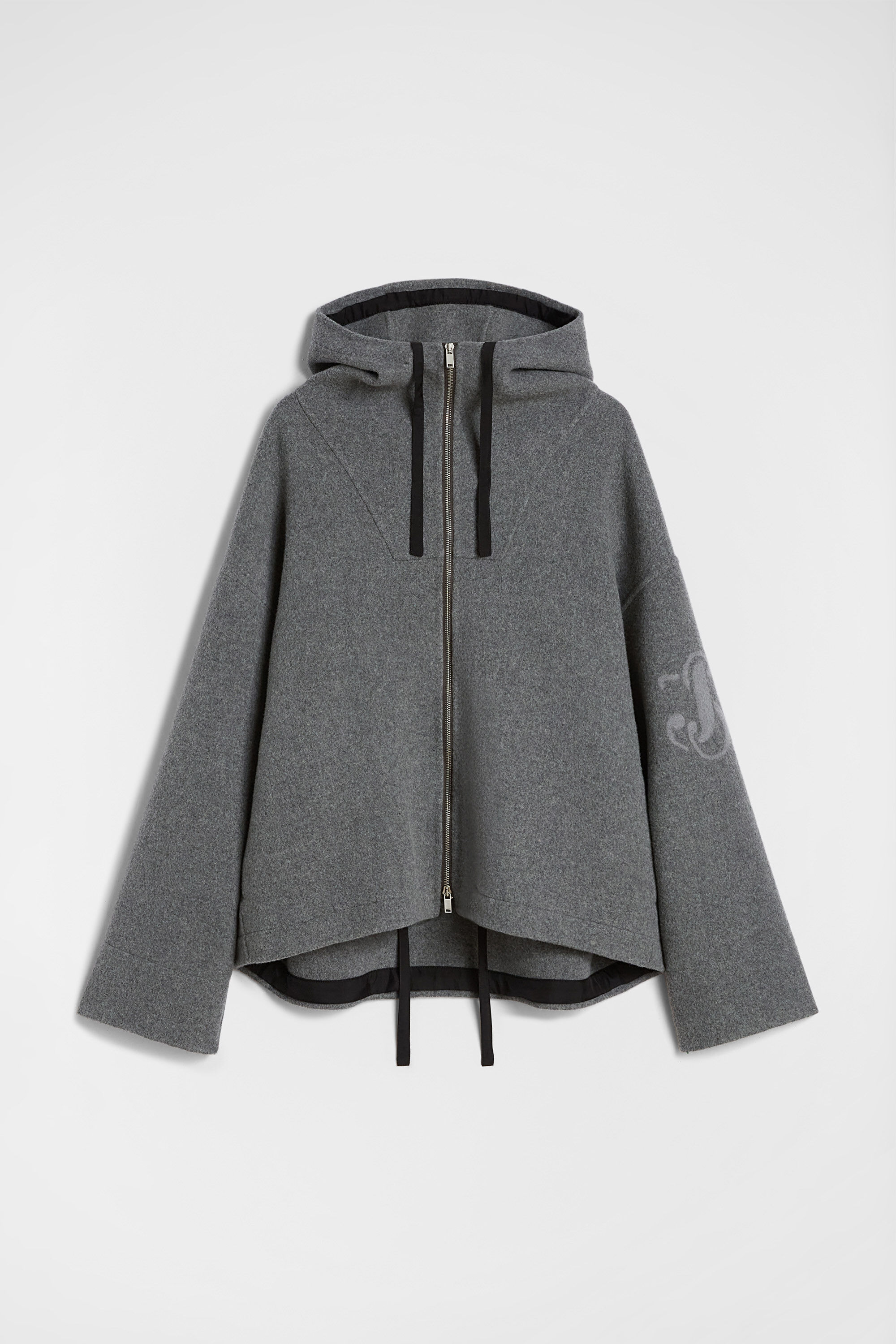 Double felted wool blouson with needle-punched Jil Sander+ monogram Details - oversized fit and boxy shape - dropped shoulders - centre-front zip closure and drawstring hood - side-seam pockets - Jil Sander+ logo needle-punched on left sleeve - drawstring hem - viscose lining - double felted wool - 100% virgin wool - made in Italy - StyleID: J47SW0014J40020034 Care - dry clean only - iron with care Fit - model is 187cm/6'1" and is wearing a size M - Please note that the physical label of the item will show the international size