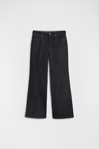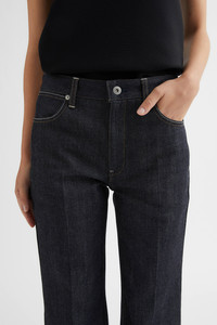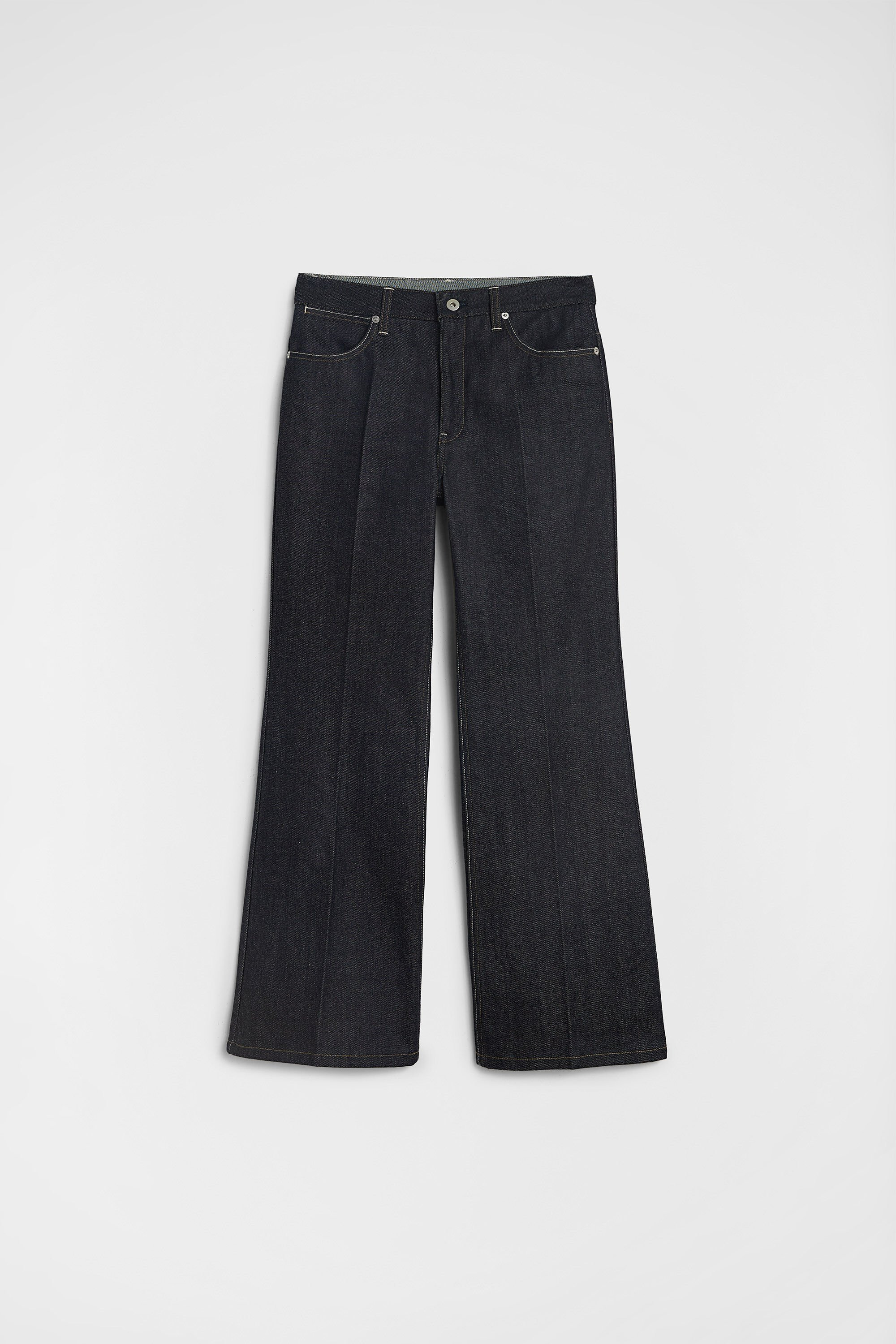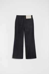 Japanese raw denim trousers with back leather patch with embossed Jil Sander logo Details - relaxed fit - regular crotch and waist - flared cropped leg - zip fly and button closure - five pockets - back leather patch with embossed Jil Sander logo - Japanese raw denim - 100% cotton - made in Japan - StyleID: J04KA0120J45041405 Care - hand wash - iron with care Fit - model is 177cm/5'9" and is wearing a denim size 27 - Please note that the physical label of the item will show the Denim sizing