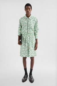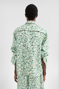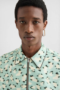 Long-sleeved heavy fluid viscose shirt with zip closure and piping in contrasting colour Details - oversized fit and boxy shape - dropped shoulders and straight hem - flat pointed collar - front zip closure - classic yoke - side-seam pockets - viscose pockets - watercolour mini flower on heavy fluid viscose saglia - 100% viscose-rayon - made in Italy - StyleID: J61DL0063J65333463 Care - dry clean only - iron with care Fit - model is 187cm/6'1" and is wearing a size 48 IT - Please note that the physical label of the item will show the Italian size