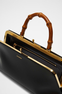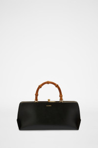 Small-sized leather handbag with metal frame detail and embossed Jil Sander logo Details - bamboo top handle - rectangular shape - clutch closure - inner zipped pocket - sleek metal frame detail - foil embossed Jil Sander logo - 100% calf leather - w 20 cm x h 18 cm x d 8 cm - made in Italy - StyleID: J07WD0020P4866001