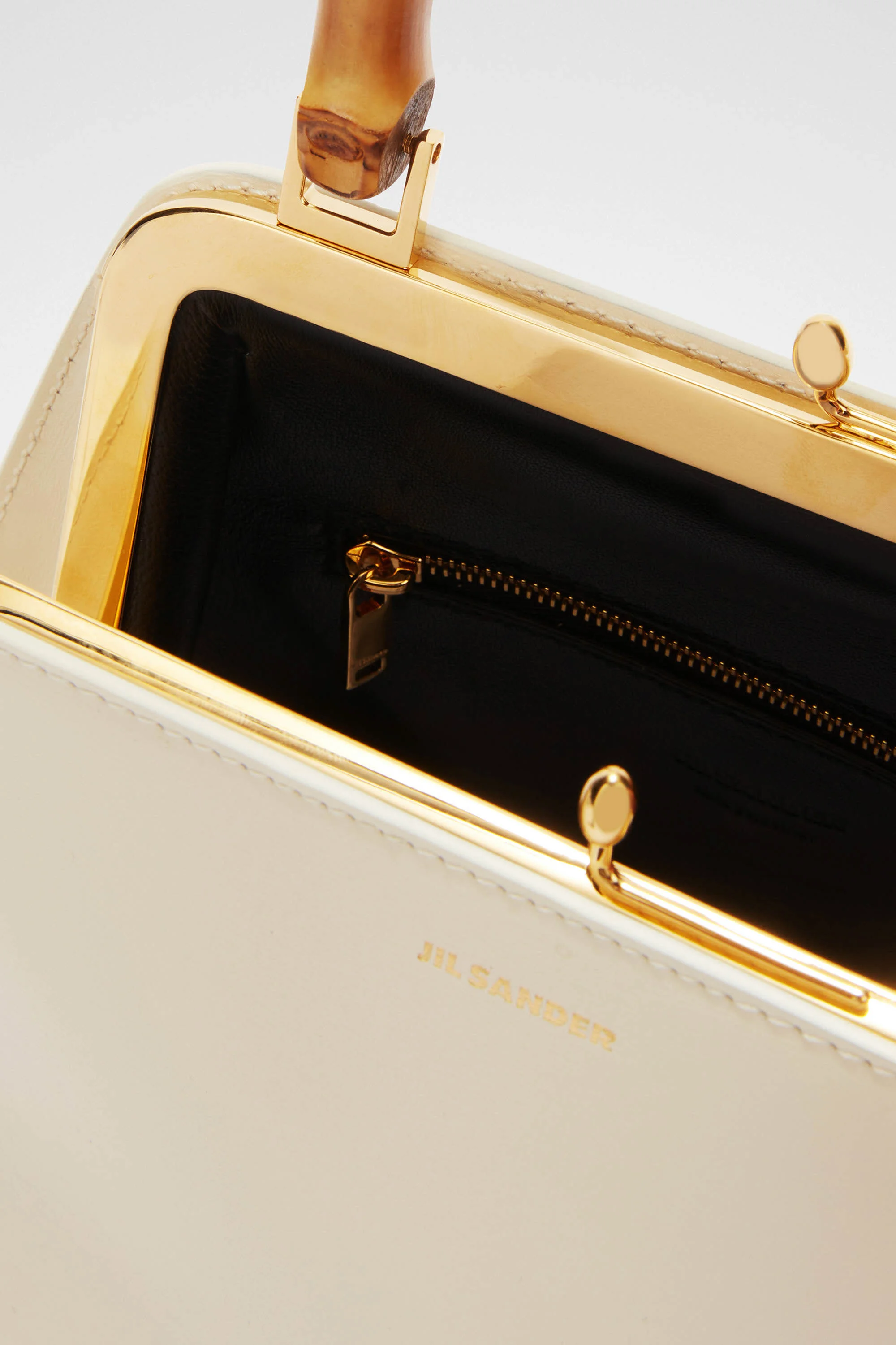 Small-sized leather handbag with metal frame detail and embossed Jil Sander logo Details - bamboo top handle - square shape - clutch closure - inner zipped pocket - sleek metal frame detail - nappa lining - foil embossed Jil Sander logo - 100% calf leather - w 18 cm x h 20 cm x d 9 cm - made in Italy - StyleID: J07WD0021P4866106