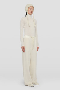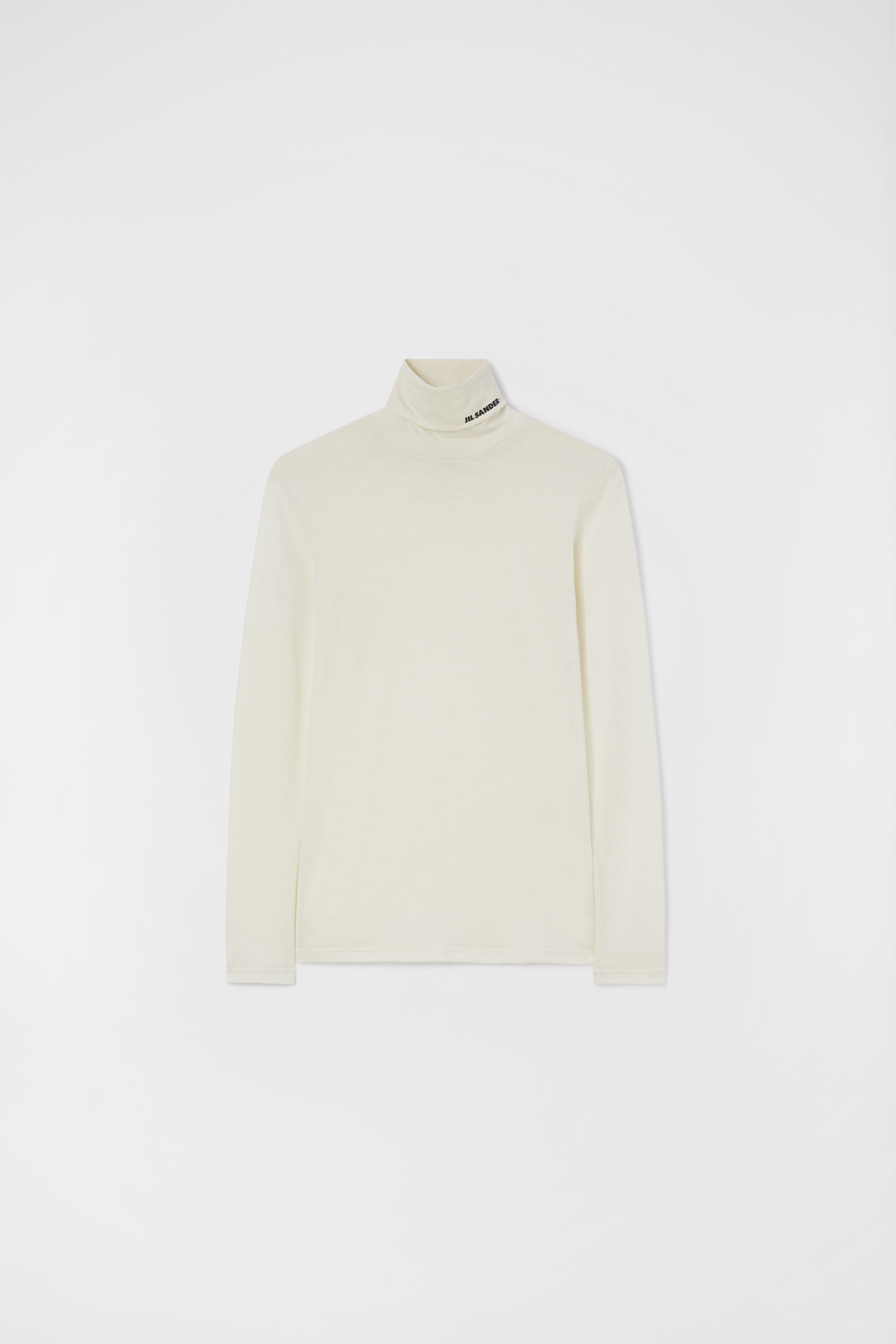 Long-sleeved t-shirt with Jil Sander+ logo printed on neck Details - slim fitted - long sleeves - high neck - Jil Sander+ logo printed on neck side - 55% polyester, 45% virgin wool - made in Italy - StyleID: J40GC0020J70021102 Care - dry clean only Fit - model is 177cm/5'9" and is wearing a size S - Please note that the physical label of the item will show the international size