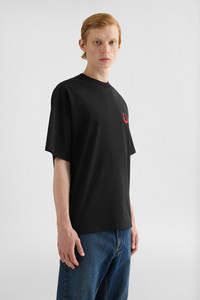 Short-sleeved cotton jersey t-shirt with embroidered horseshoe and printed Jil Sander logo Details - relaxed fit and boxy shape - dropped shoulders - ribbed crew neck - horseshoe embroidered on chest - Jil Sander logo printed on back of neck - 100% cotton - made in Italy - StyleID: J54GC0013J20347001 Care - machine wash to 30°C - iron with care Fit - model is 187cm/6'1" and is wearing a size M - Please note that the physical label of the item will show the international size