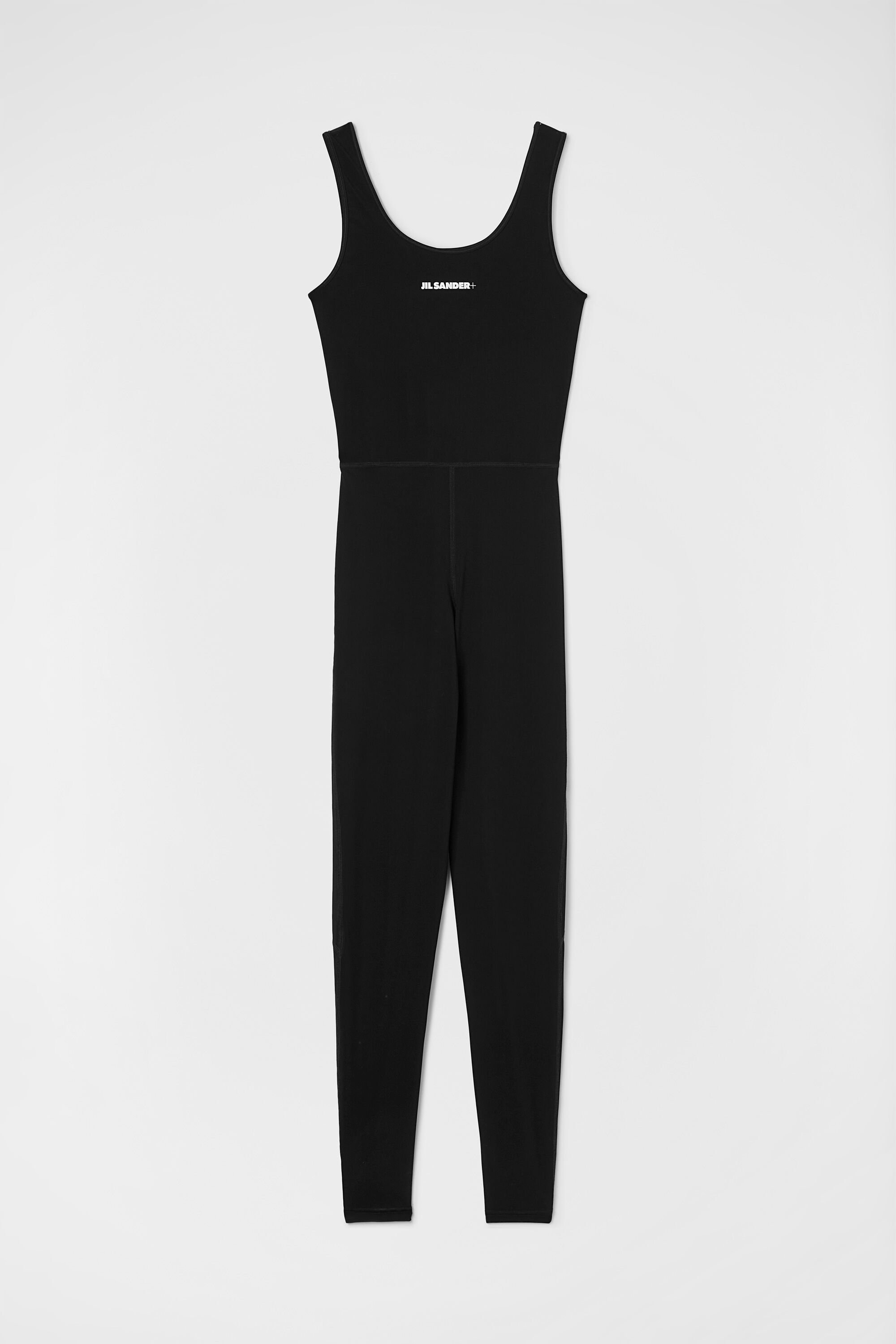 Sleeveless technical jersey jumpsuit with printed Jil Sander+ logo Details - slim fit - long trousers - round neckline - printed Jil Sander+ logo - stretch technical jersey - 59% polyamide-nylon 41% elastane-spandex - made in Italy - StyleID: J40FP0106J20031001 Care - hand wash - iron with care Fit - model is 177cm/5'9" and is wearing a size S - Please note that the physical label of the item will show the international size