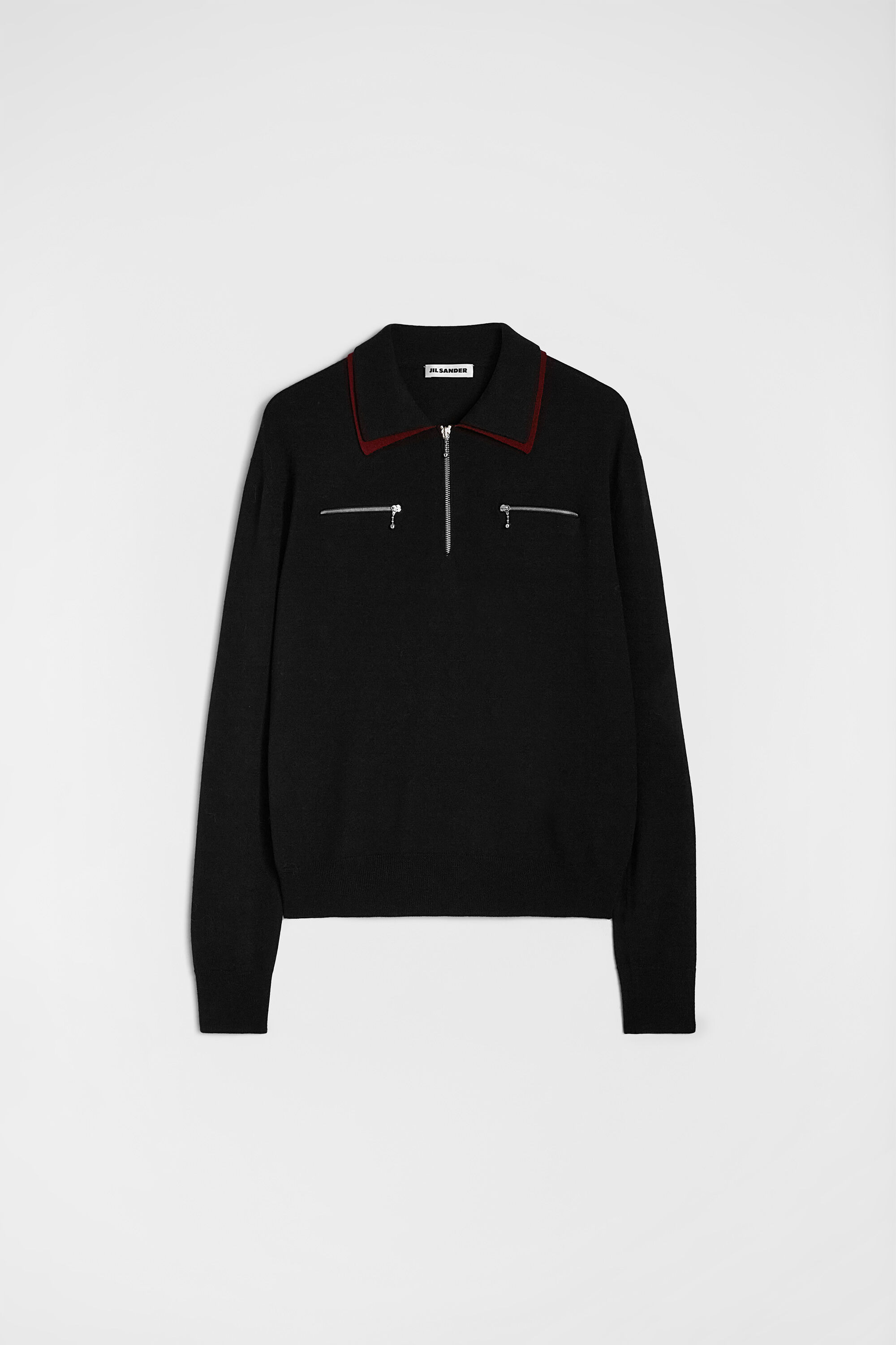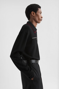 Long-sleeved lightweight wool sweater with double polo collar Details - regular fit - double polo collar in contrasting colour - collar zip closure - chest zipped pockets - ribbed hem and cuffs - fine-knit wool - 100% virgin wool - made in Italy - StyleID: J22GL0119J14782001 Care - dry clean only - iron with care Fit - model is 187cm/6'1" and is wearing a size 48 IT - Please note that the physical label of the item will show the Italian size