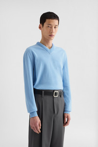 Long-sleeved lightweight wool sweater with padded v-neck Details - regular fit - ribbed v-neck - ribbed hem and cuffs - lightweight knitted wool - 100% wool - made in Italy - StyleID: J61GP0016J14823456 Care - dry clean only - iron with care Fit - model is 187cm/6'1" and is wearing a size 48 IT - Please note that the physical label of the item will show the Italian size