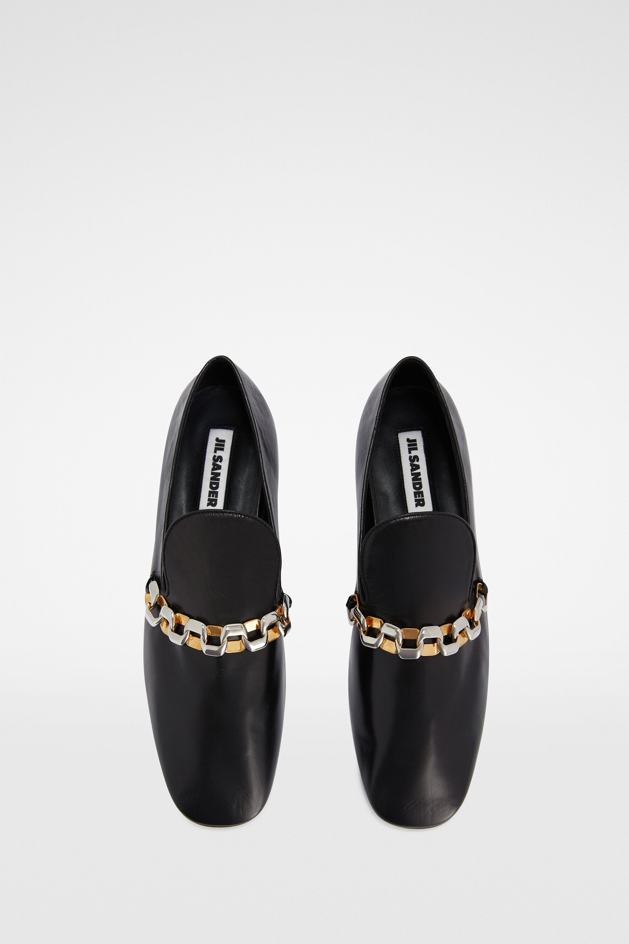 Leather flat loafer with two-toned hardware Details - round toe - two-toned knotted chain on the upper - nappa leather insole and lining - calf leather sole with rubber injection - Jil Sander logo branded insole - 100% goat leather - made in Italy - StyleID: J15WR0023P8226001