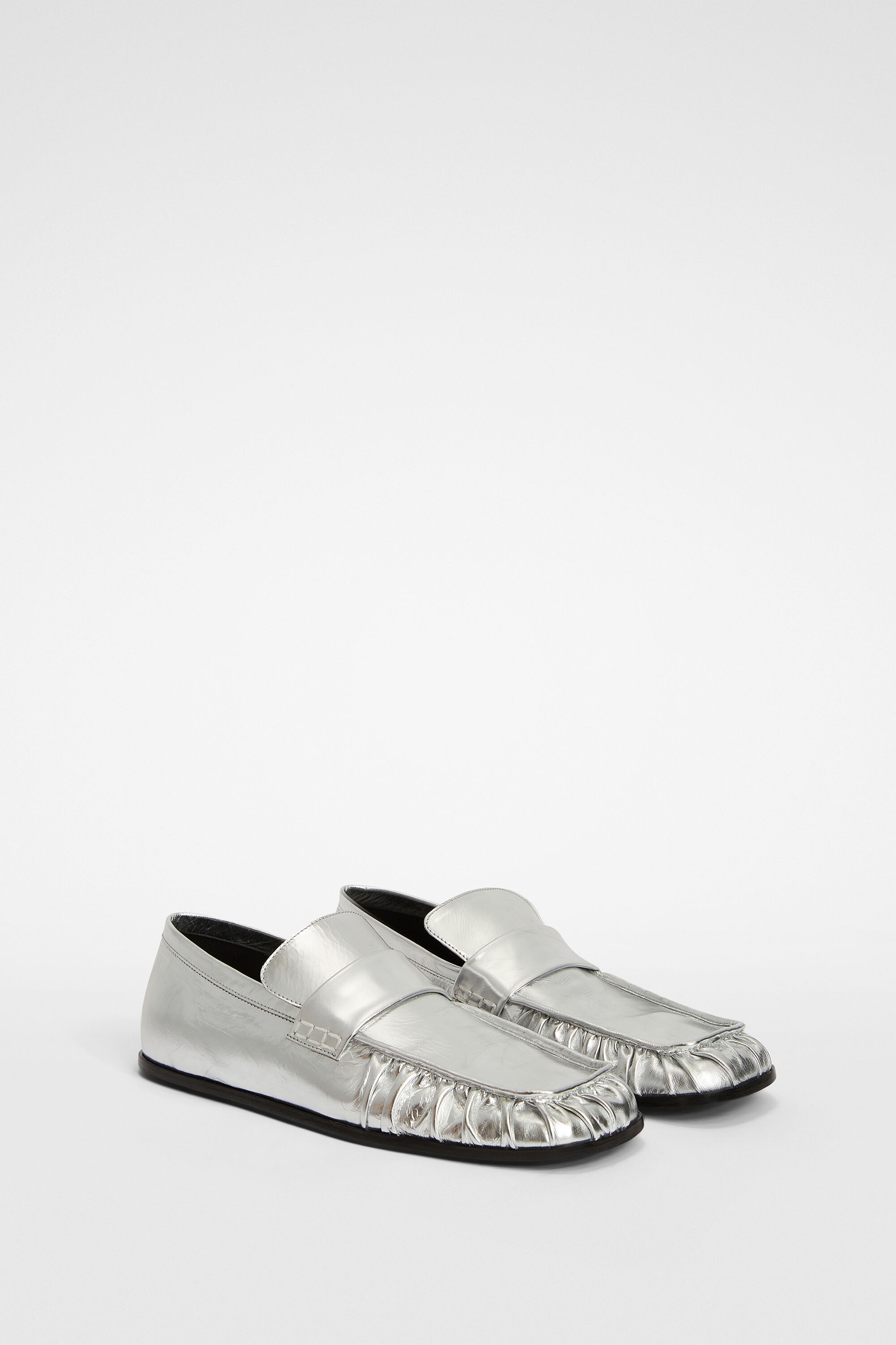 Laminated leather loafer with hand-stitched wrinkled upper Details - squared deconstructed toe - exaggerated welt - nappa leather insole and lining - calf leather outersole with rubber injection - Jil Sander logo branded insole - wrinkled laminated leather - 100% calf leather - made in Italy - StyleID: J16WR0022P4836056