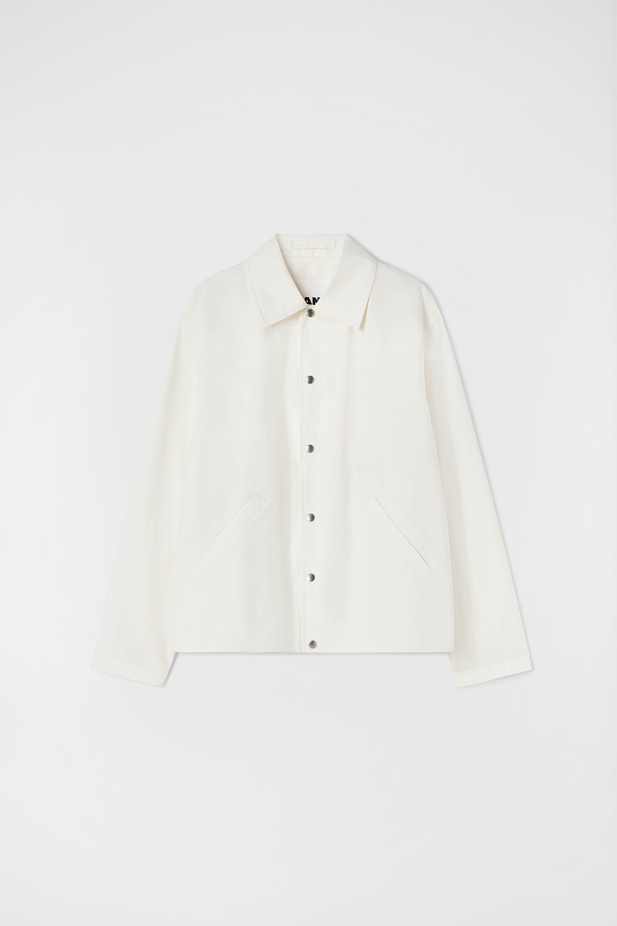 Lightweight cotton poplin blouson jacket with printed Jil Sander logo on the back Details - relaxed fit and boxy shape - flat collar and dropped shoulders - snap button closure - jetted pockets - adjustable button closure cuff - printed Jil Sander logo on the back - cotton poplin - 100% cotton - made in Italy - StyleID: J23BN0003J45071103 Care - dry clean only - iron with care Fit - model is 187cm/6'1" and is wearing a size 48 IT - Please note that the physical label of the item will show the Italian size