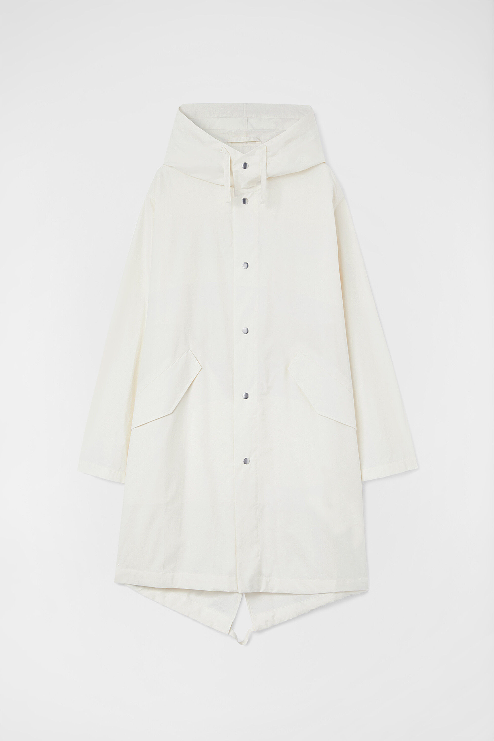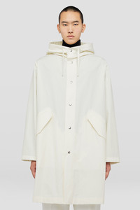 Half-lined cotton poplin hooded parka with printed Jil Sander logo Details - mid-length and oversized fit - snap button closure and drawstring waist and hem - two flap pockets with reinforcement stitching detail - rounded hem with shorter front - printed Jil Sander logo on the back - cotton poplin - 100% cotton - made in Italy - StyleID: J23AA0008J45070103 Care - dry clean only - iron with care Fit - model is 187cm/6'1" and is wearing a size 48 IT - Please note that the physical label of the item will show the Italian size