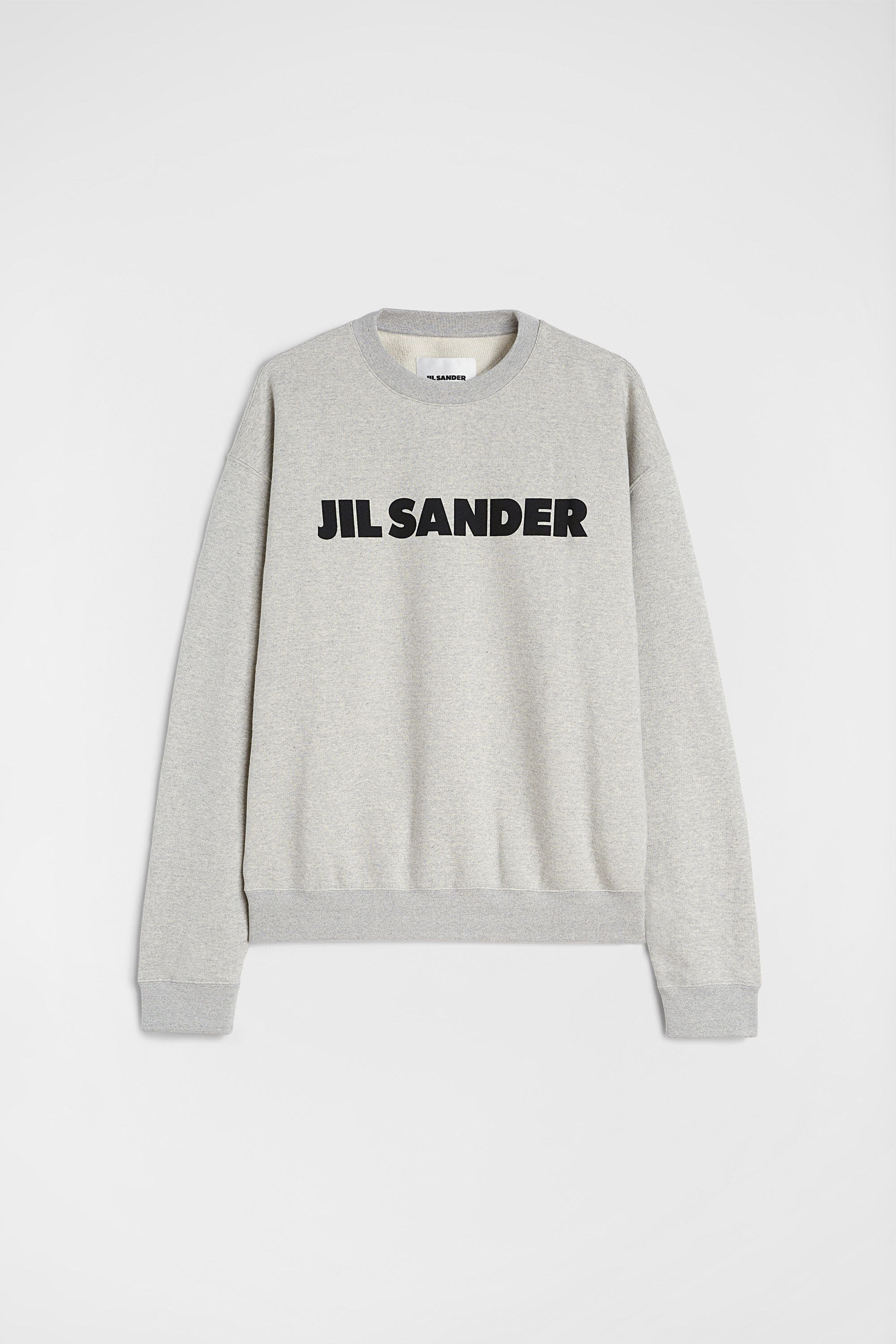 Long-sleeved cotton terry sweatshirt with printed Jil Sander logo Details - relaxed fit - dropped shoulders - ribbed crew neck, hem and cuffs - Jil Sander printed logo on front - compact cotton terry - 100% cotton - made in Italy - StyleID: J54GU0003J20010052 Care - machine wash to 30°C - iron with care Fit - model is 187cm/6'1" and is wearing a size M - Please note that the physical label of the item will show the international size