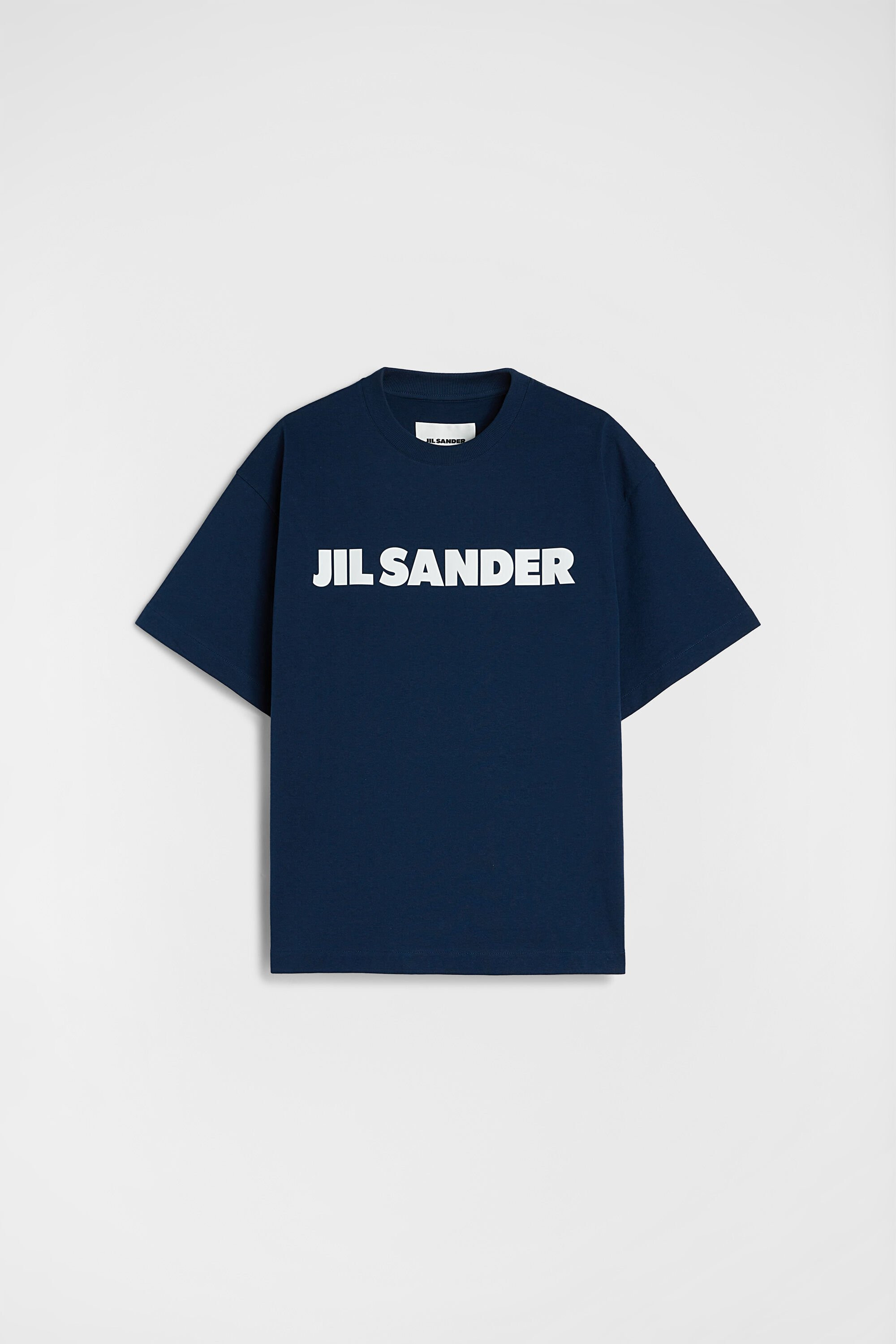 Stiff cotton jersey t-shirt with printed Jil Sander logo Details - oversized fit and boxy shape - dropped shoulders - short sleeves - ribbed crew neck - Jil Sander printed logo on front - stiff lightweight cotton jersey - 100% cotton - made in Italy - StyleID: J53GC0009J45317419 Care - hand wash - iron with care Fit - model is 177cm/5'9" and is wearing a size S - Please note that the physical label of the item will show the international size