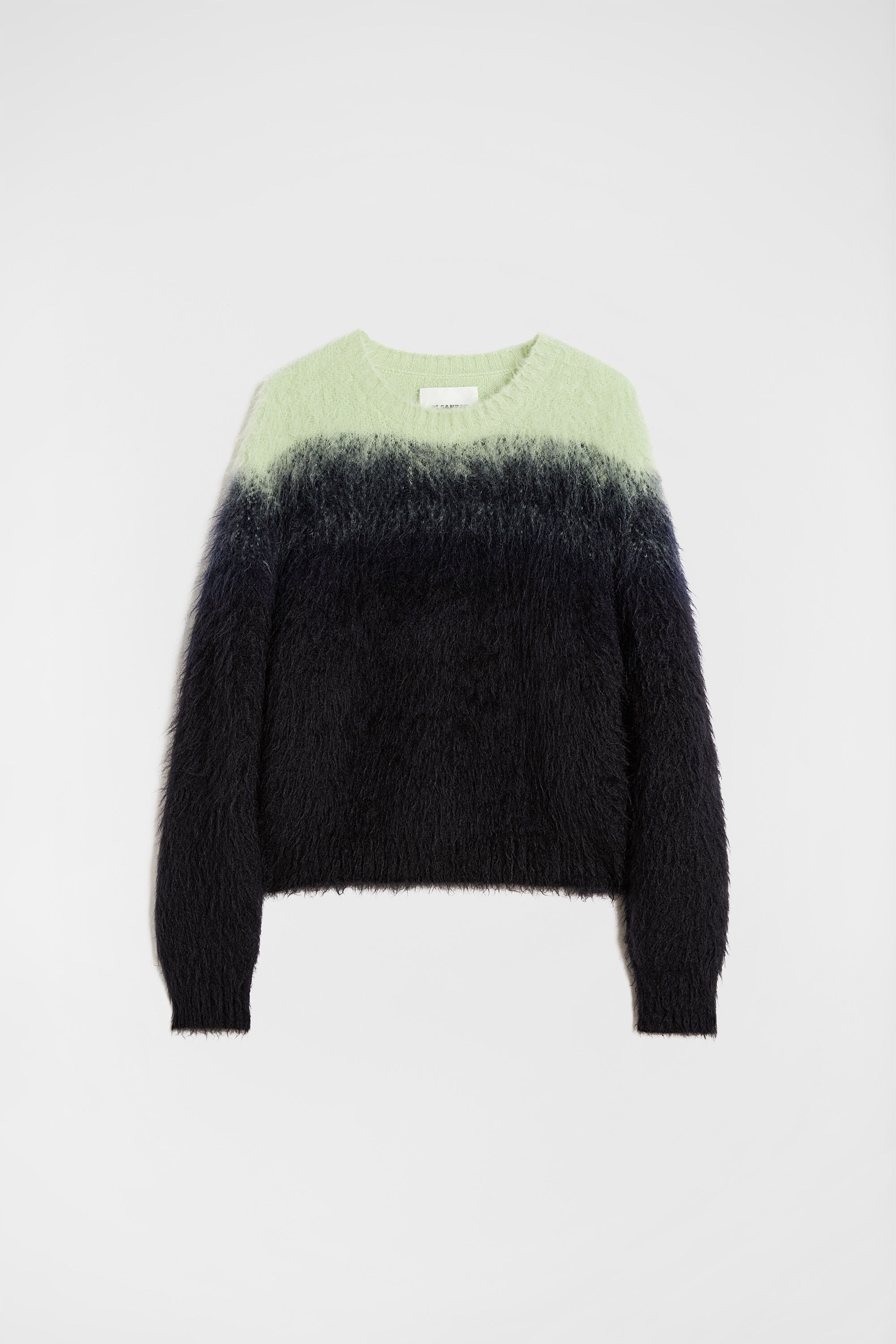 Long-sleeved brushed wool mohair jacquard sweater Details - regular fit - ribbed neck, hem and cuffs - brushed wool mohair jacquard - 67% mohair 5% wool 28% polyamide-nylon - made in Italy - StyleID: J21GP0178J14817093 Care - dry clean only - iron with care Fit - model is 187cm/6'1" and is wearing a size 48 IT - Please note that the physical label of the item will show the Italian size
