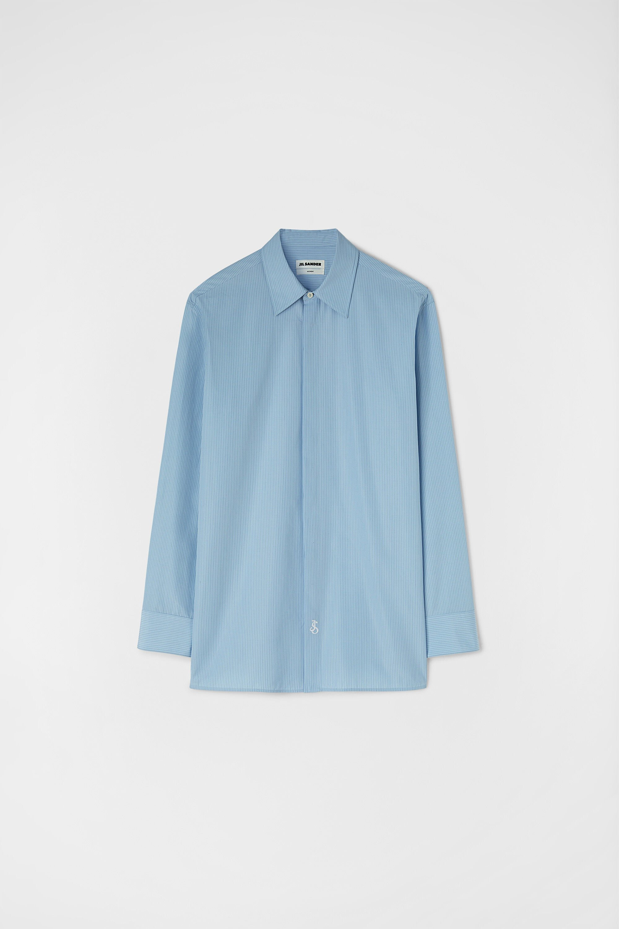 Cotton straight-fit shirt with pointed collar and embroidered Jil Sander monogram Details - straight fit - one-button collarstand - classic yoke - concealed button front closure - one-pleat sleeves with one-button cuffs - staight hem - embroidered Jil Sander monogram - 100% cotton - made in Italy - StyleID: J24DL0103J45174494 Care - dry clean only - iron with care Fit - model is 187cm/6'1" and is wearing a collar size 40