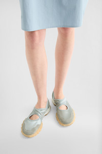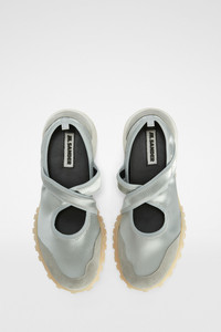 Stretch satin and suede sneaker ballerina with rubber pebble outersole Details - round toe and cross-over straps - slip-on style - stretch satin upper with suede trims - leather footbed - rubber pebble outersole with embossed Jil Sander logo - Jil Sander logo embossed on back tab - Jil Sander logo branded insole - upper 57% polyamide-nylon 33% acetate 10% elastane-spandex, suede trims 100% calf leather - made in Italy - StyleID: J15WS0039P7607047