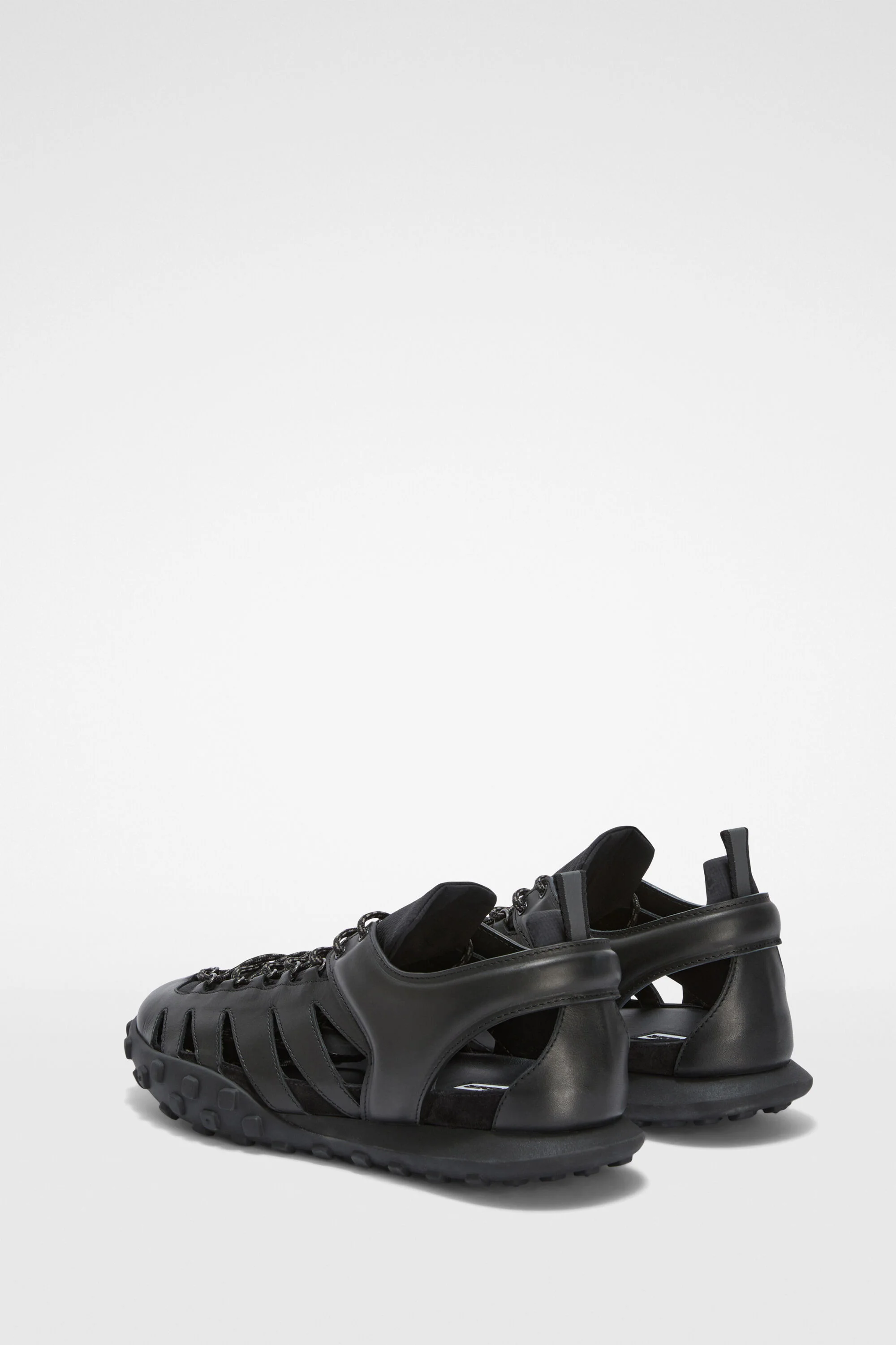 Low-top leather and suede sandal with rubber pebble outersole Details - round toe and lace-up front - leather upper with suede trims and ripstop stretch insert - trekking laces and metallic eyelets - leather insole and lining - rubber pebble outersole with embossed Jil Sander logo - back pull tab - Jil Sander logo branded insole - 100% calf leather - made in Italy - StyleID: J33WS0048P7580001