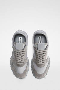 Low-top nylon and suede sneakers with rubber pebbles outersole Details - round toe and lace-up front - satin-effect nylon upper with suede trims - nylon and nappa lining - rubber pebbles outersole with embossed Jil Sander logo - fabric tongue with leather patch - Jil Sander logo embossed on back tab - Jil Sander logo branded insole - upper 100% polyester, suede trims 100% calf leather - made in Italy - StyleID: J16WS0031P0156090