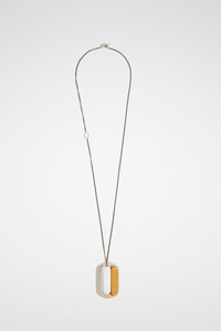 Handcrafted brass necklace with two-toned pendant and engraved Jil Sander logo Details - adjustable chain length - t-closure - engraved Jil Sander logo - nickel tested - antioxidant treatment - 100% brass - made in Italy - StyleID: J11UU0199P6959043