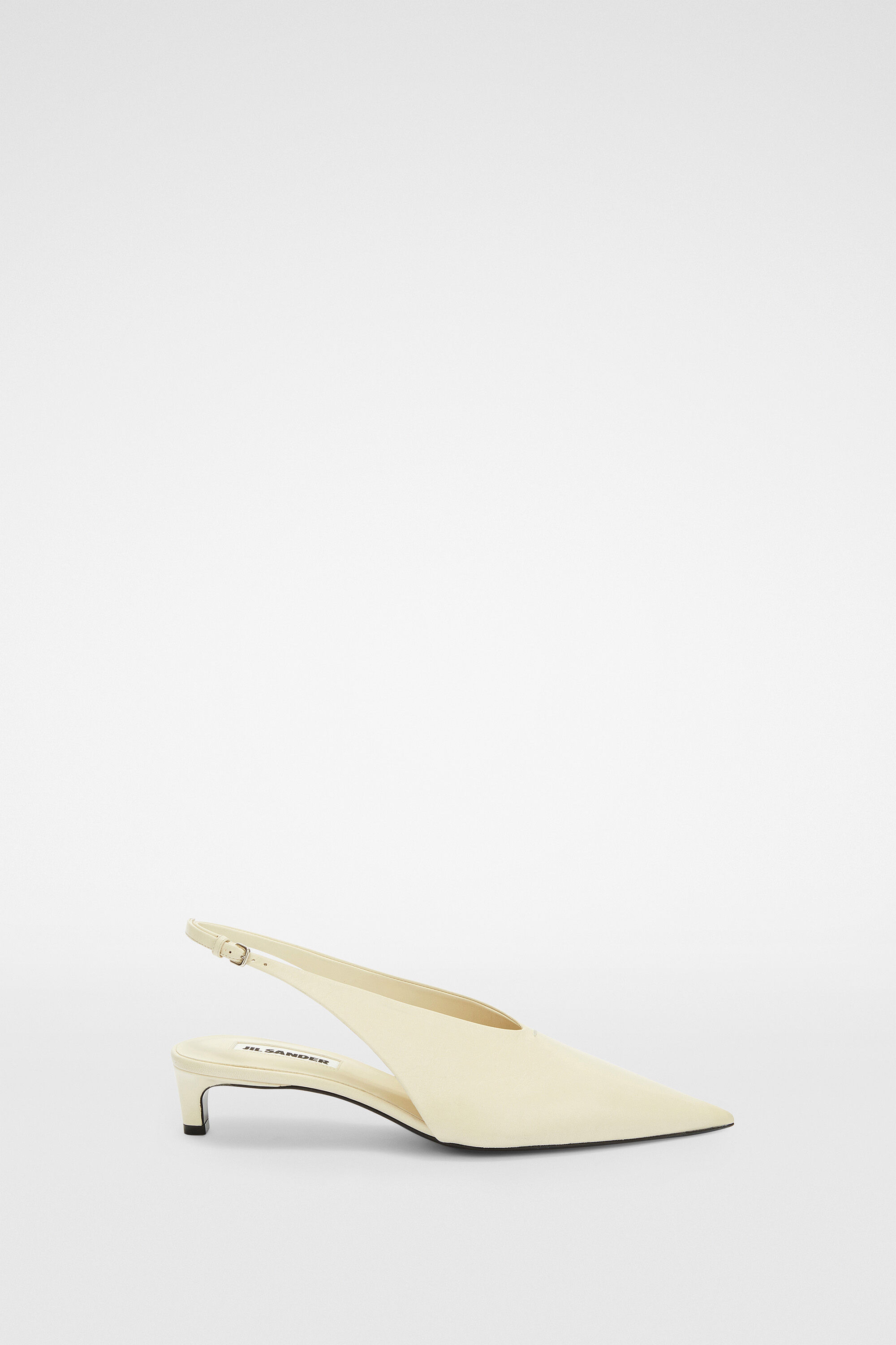 Leather pump with low heel, pointed toe and back strap Details - pointed toe and low heel - adjustable leather ankle strap - leather footbed and sole - nappa lining - Jil Sander logo branded insole - upper 100% goat leather, sole 100% calf leather - made in Italy - StyleID: J15WP0128P8226105
