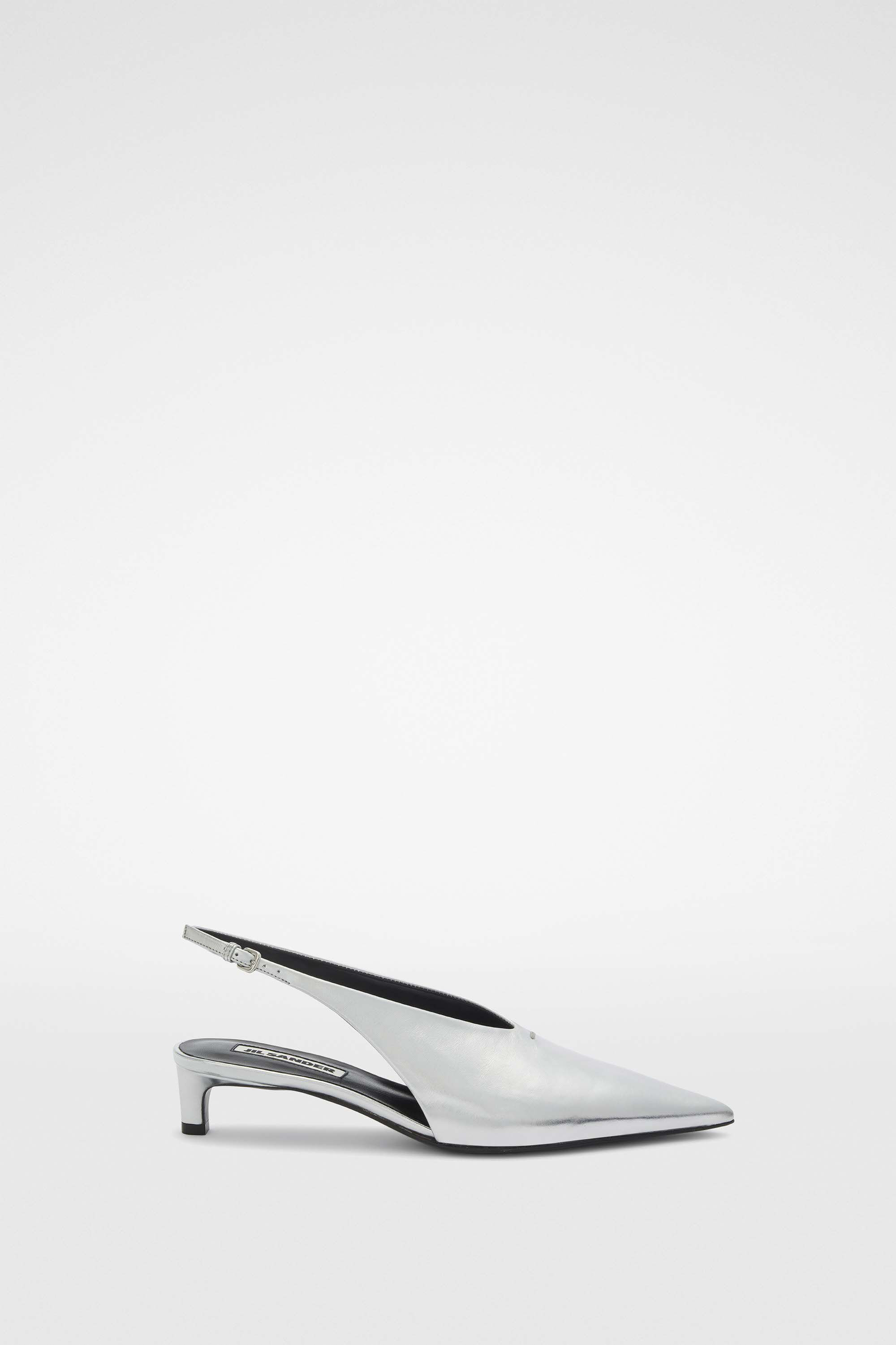 Leather pump with low heel, pointed toe and back strap Details - pointed toe and low heel - adjustable leather ankle strap - leather footbed and sole - nappa lining - Jil Sander logo branded insole - metallic leather - 100% calf leather - made in Italy - StyleID: J15WP0128P4836056
