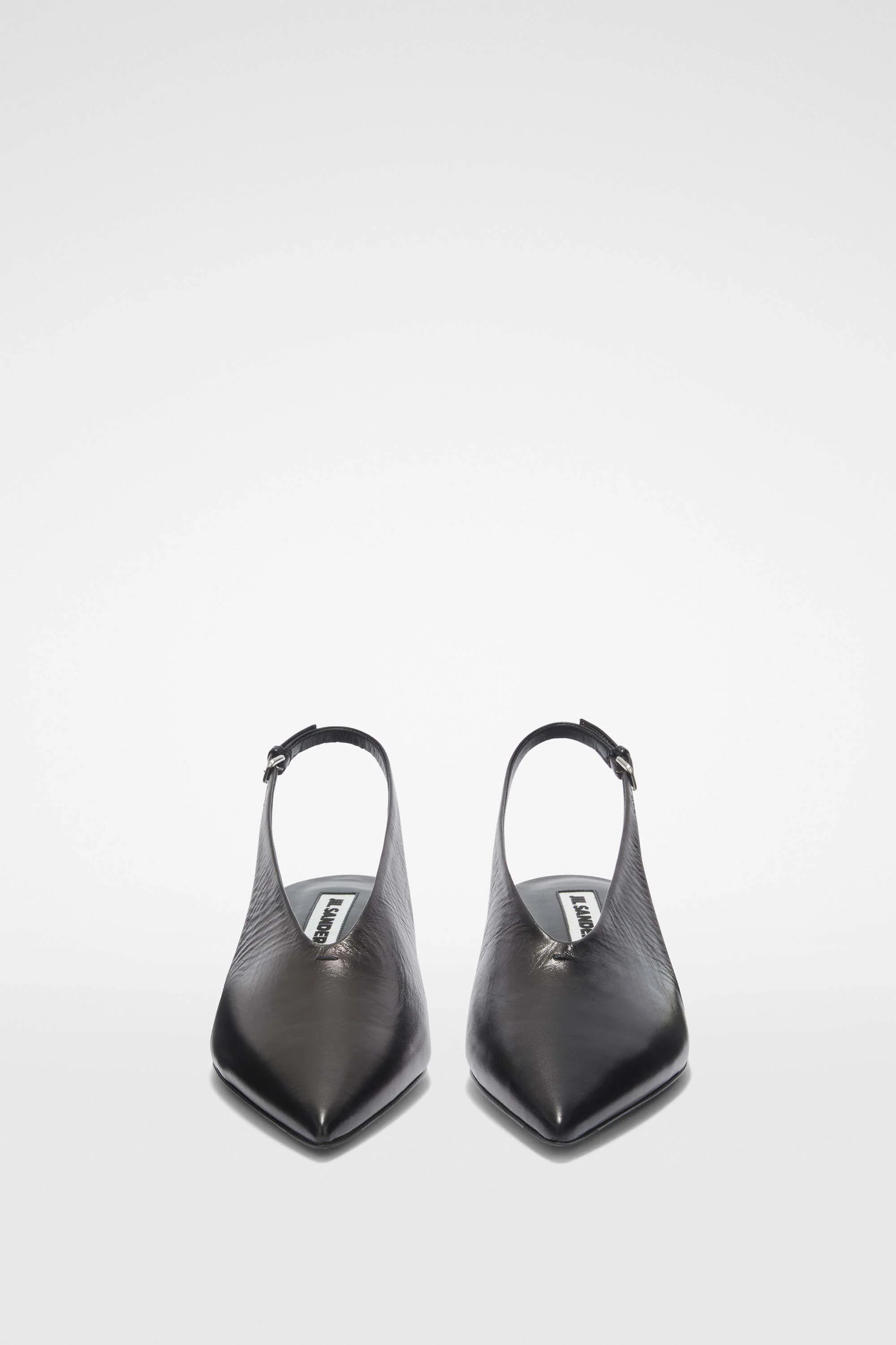 Leather pump with low heel, pointed toe and back strap Details - pointed toe and low heel - adjustable leather ankle strap - leather footbed and sole - nappa lining - Jil Sander logo branded insole - upper 100% goat leather, sole 100% calf leather - made in Italy - StyleID: J15WP0128P4864001
