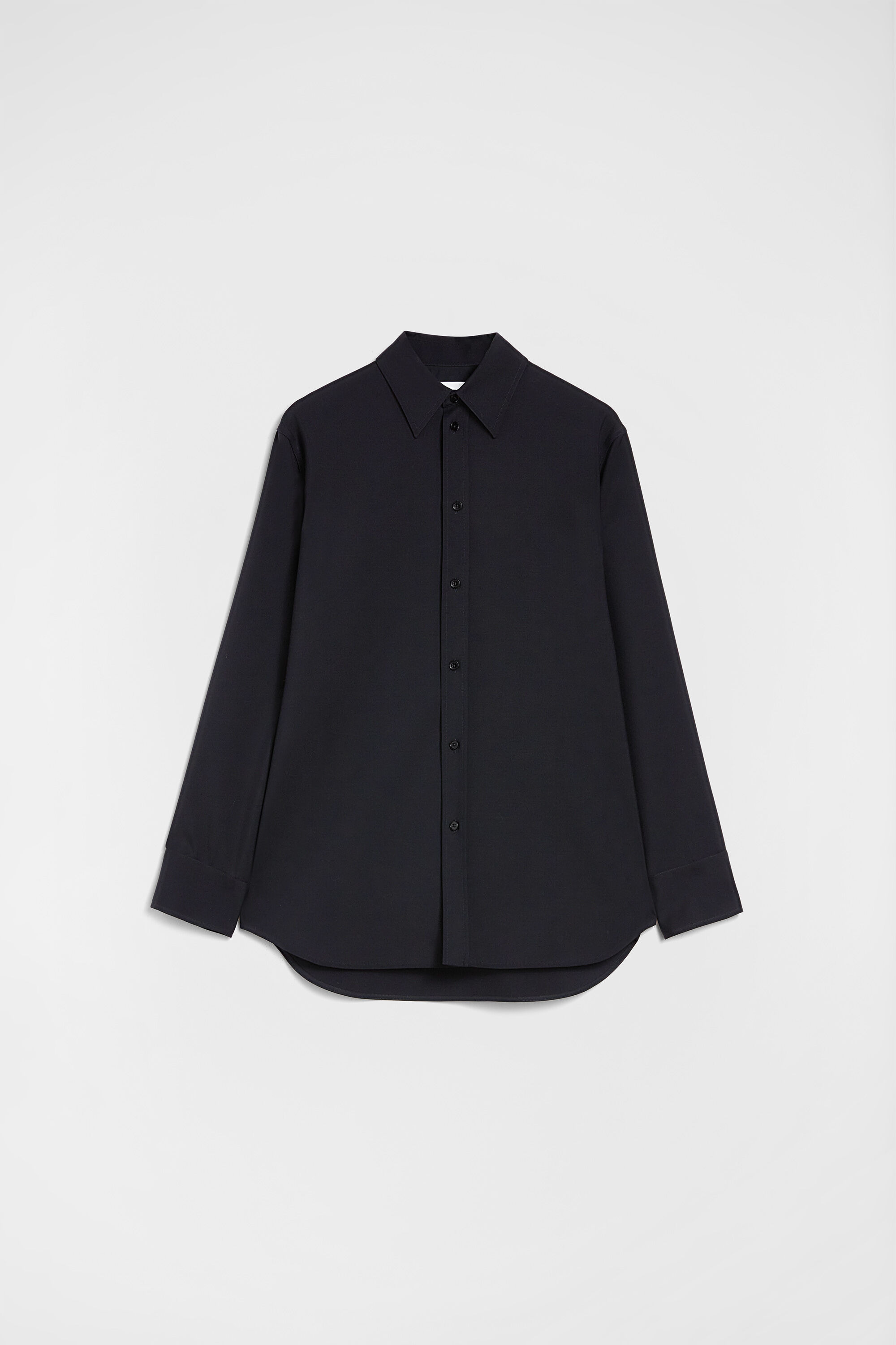 Long-sleeved gabardine wool shirt Details - relaxed fit - pointed collar with one-button collar stand - front button closure - curved hem - fine wool gabardine - 100% wool - made in Italy - StyleID: J23DL0001J40159401 Care - dry clean only - iron with care Fit - model is 188cm/6'2" and is wearing a collar size 40