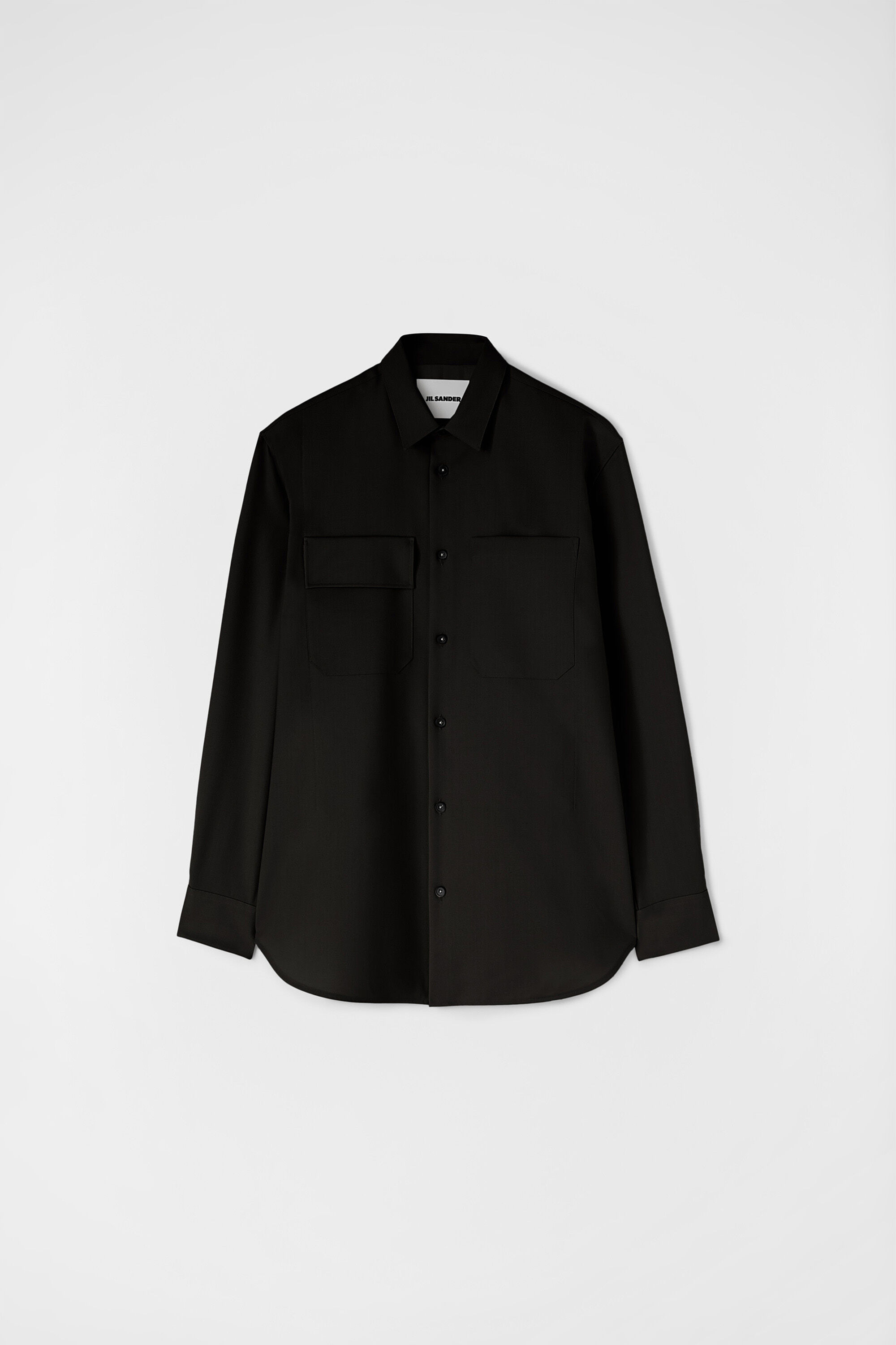 Long-sleeved gabardine wool shirt Details - relaxed fit - pointed collar with one-button collar stand - front button closure - patch pockets on front - curved hem - fine wool gabardine - 100% wool - made in Italy - StyleID: J23DL0003J40159001 Care - dry clean only - iron with care Fit - model is 188cm/6'2" and is wearing a collar size 40