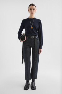 Slim-fit Japanese raw denim trousers Details - we recommend taking one size up - cropped leg - five-pocket - coin pocket - zip and button closure - reversed waistband - dropped crotch - twisted leg seams - Japanese raw denim - 100% cotton - made in Japan - StyleID: J04KA0104J45041405 Care - dry clean only - iron with care Fit - model is 177cm/5'9" and is wearing a size 27 denim - Please note that the physical label of the item will show the Denim sizing