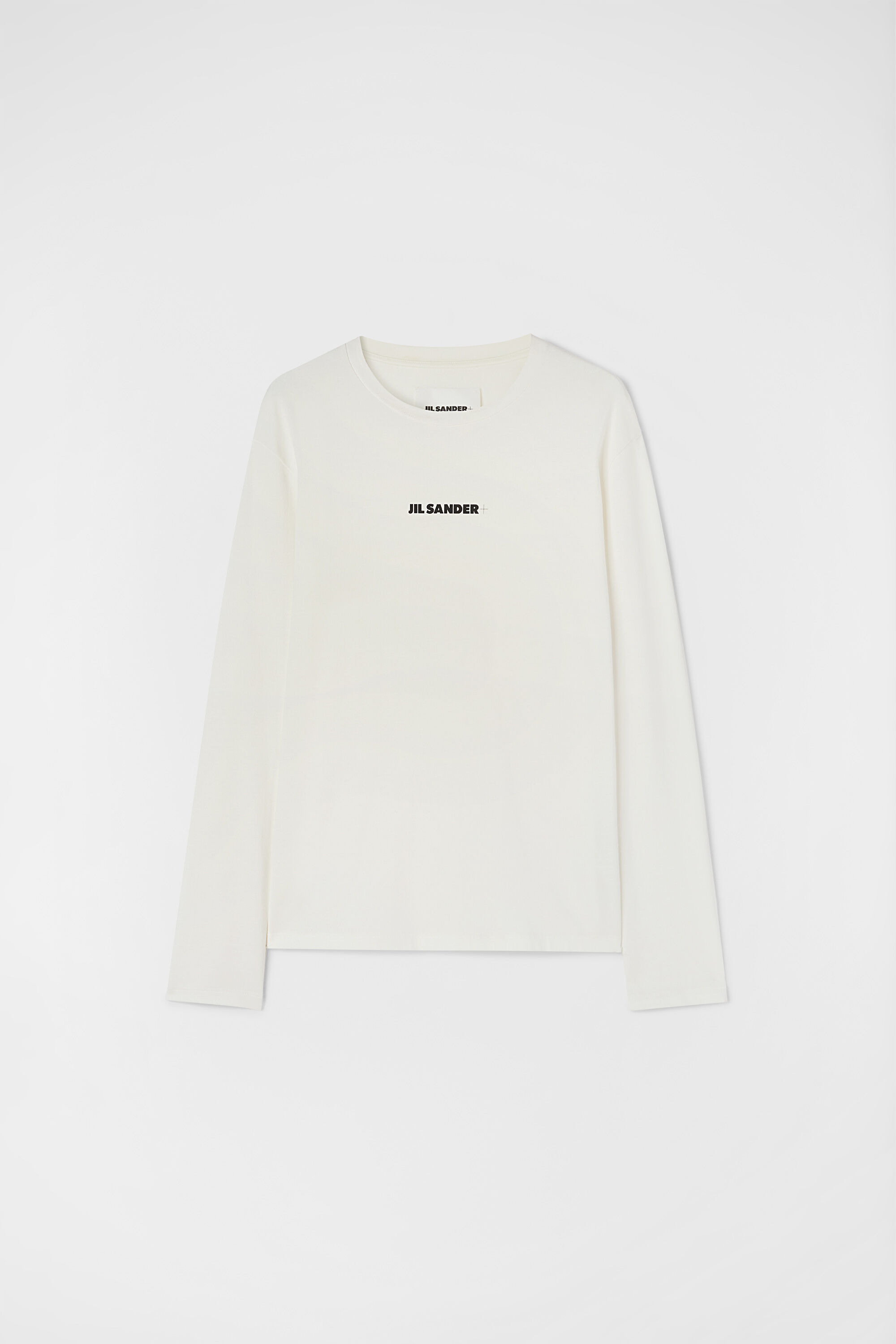 Long-sleeved cotton jersey t-shirt with printed Jil Sander+ logo Details - oversized and long fit - dropped shoulders - printed Jil Sander+ logo on chest - lightweight cotton jersey - 100% cotton - made in Italy - StyleID: J47GC0116J20103102 Care - hand wash - iron with care Fit - model is 187cm/6'1" and is wearing a size M - Please note that the physical label of the item will show the international size