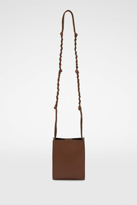 Small-sized leather shoulder and crossbody bag with hand-knotted strap and embossed Jil Sander logo Details - hand-knotted strap - rectangular shape - magnetic button closure - nappa lining - blind embossed Jil Sander logo - 100% calf leather - w 14 cm x h 19 cm x d 5 cm - made in Italy - StyleID: J25WG0003P5995214