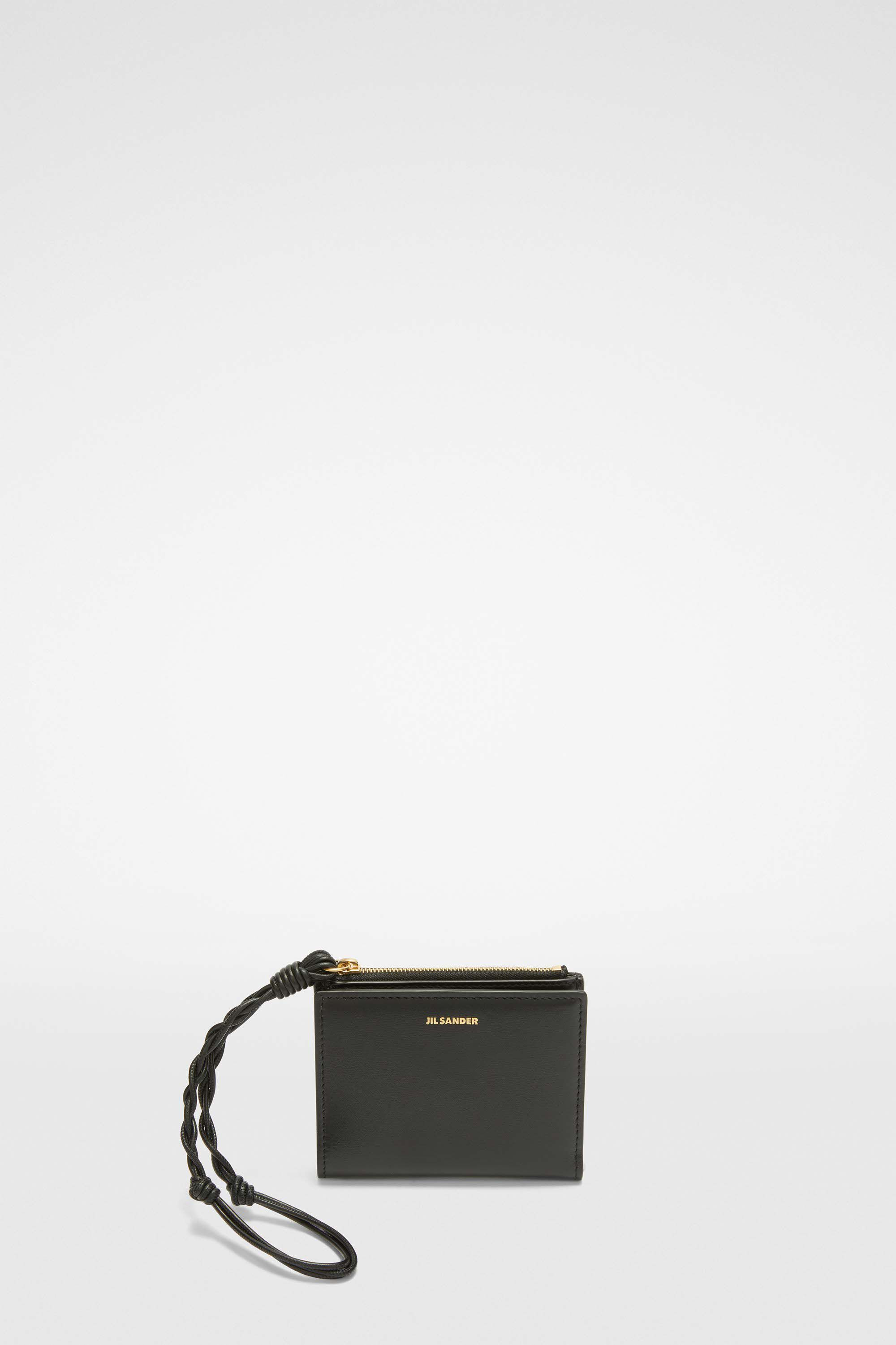 Folded mini leather wallet and coin purse with hand-knotted strap and embossed Jil Sander logo Details - side zipped coin pocket - note compartment with snap button closure - four card slots - zip closure - nappa lining - embossed Jil Sander logo - 100% calf leather - made in Italy - StyleID: J10UI0003P4841001