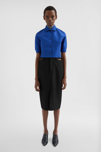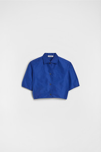Cropped-fit short-sleeved technical faille shirt with soft draped waist Details - cropped and boxy shape - centre-front button closure - adjustable cuffs with single button - double face technical crepe - 100% polyester - made in Italy - StyleID: J03DL0237J70221427 Care - dry clean only - iron with care Fit - model is 177cm/5'9" and is wearing a size 40 IT - Please note that the physical label of the item will show the Italian size