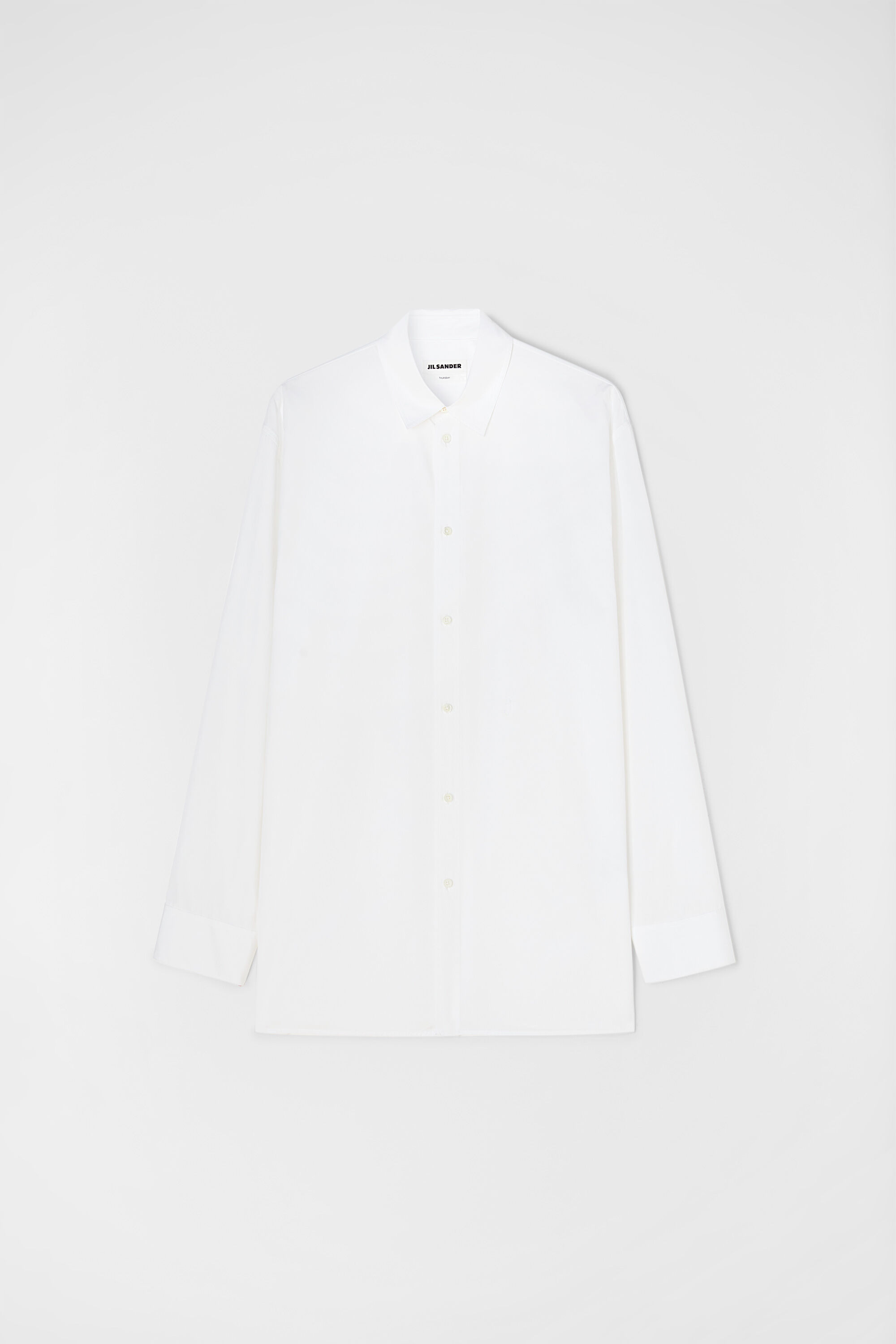 Long-sleeved organic cotton poplin shirt with centre-back pleat and embroidered Jil Sander monogram Details - relaxed fit and boxy shape - slightly dropped shoulders - pointed collar with one-button collar stand - centre-front button closure - centre-back pleat - straight hem - embroidered Jil Sander monogram - organic cotton poplin - 100% cotton - made in Italy - StyleID: J24DL0113J45001100 Care - dry clean only - iron with care Fit - model is 187cm/6'1" and is wearing a collar size 40