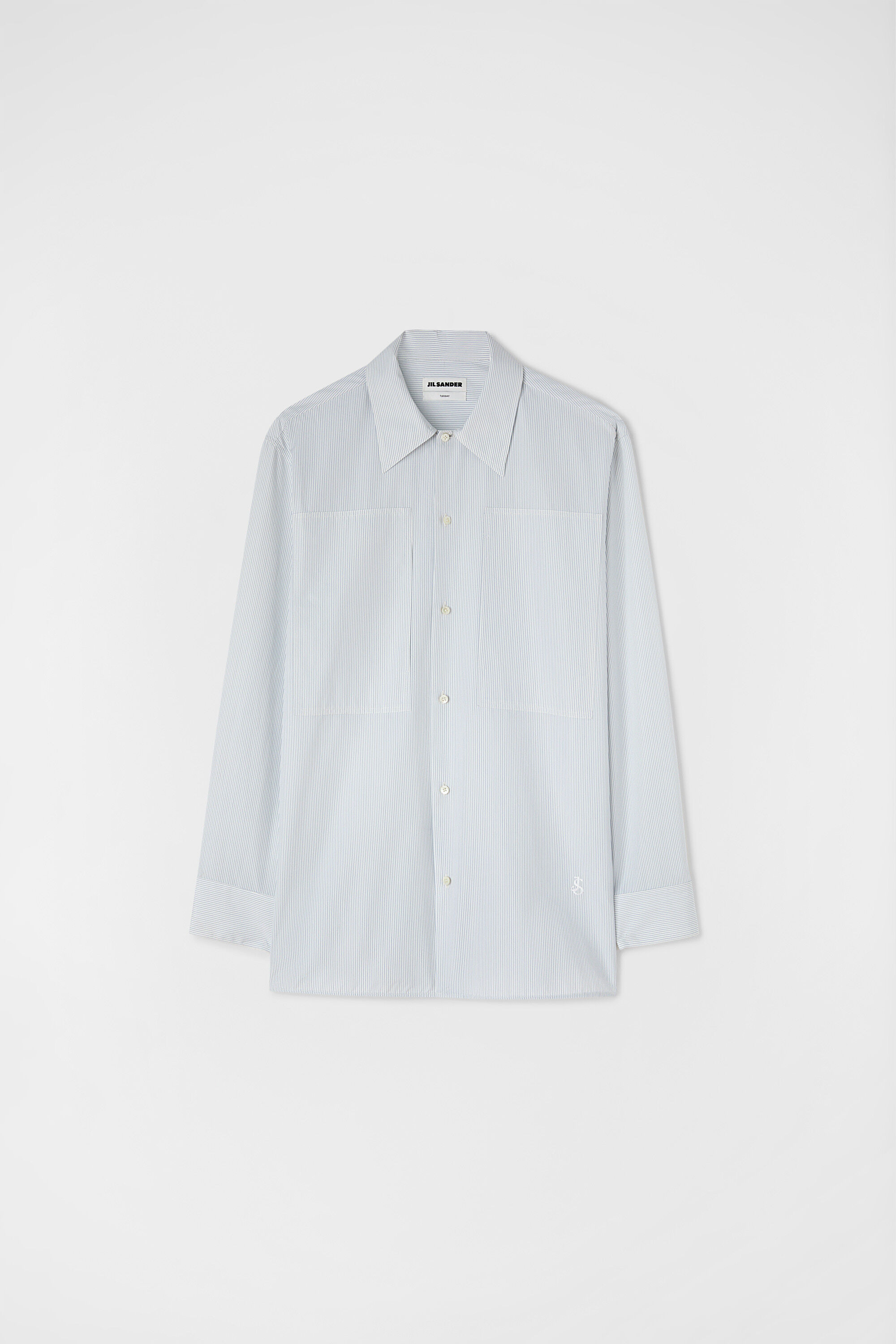 Cotton straight-fit shirt with flat pointed collar and embroidered Jil Sander monogram Details - straight fit - classic yoke - front closure with visible buttons - two workwear patch pockets - one-pleat sleeves with one-button cuffs - staight hem - embroidered Jil Sander monogram - 100% cotton - made in Italy - StyleID: J24DL0104J45175154 Care - dry clean only - iron with care Fit - model is 187cm/6'1" and is wearing a collar size 40