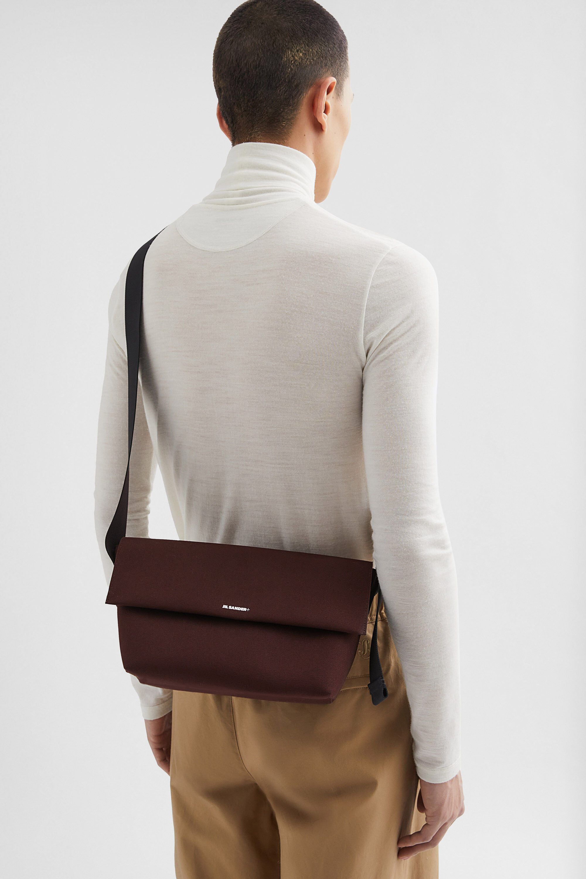 Medium-sized canvas crossbody bag with printed Jil Sander+ logo Details - adjustable shoulder strap - snap button closure - zipped pocket with leather zip puller - inner leather card slot - printed Jil Sander+ logo on front - 100% cotton - made in Italy - StyleID: J49WG0003P6647965
