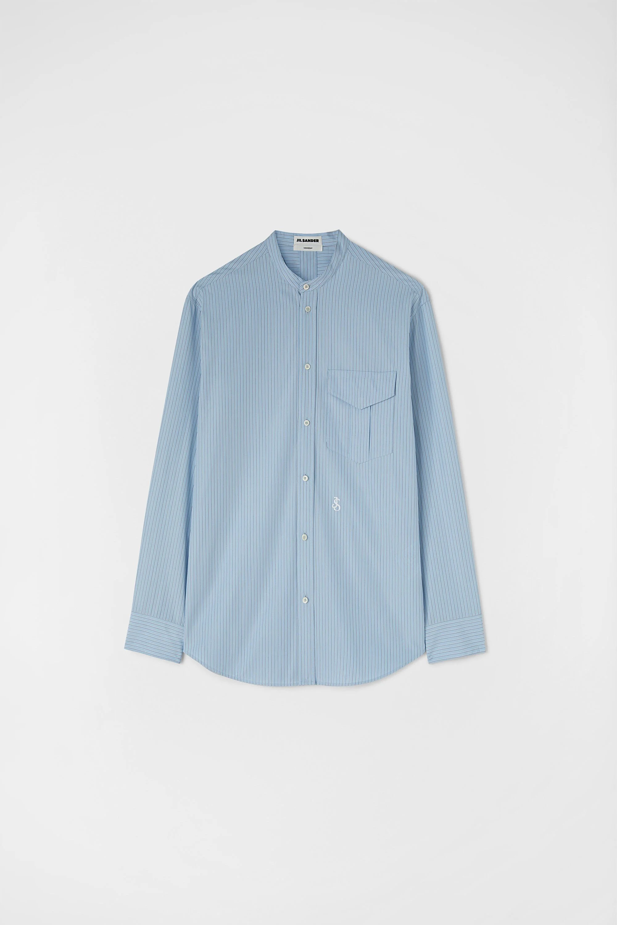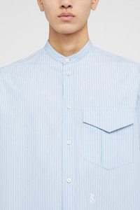 Cotton boxy-fit shirt with stitch detail on yoke and embroidered Jil Sander monogram Details - boxy fit - one-button collarstand - front closure with visible buttons - patch pocket with pleats and flap - one-pleat sleeve and one-button cuffs - curved hem - embroidered Jil Sander monogram - 100% cotton - made in Italy - StyleID: J24DL0108J45176481 Care - dry clean only - iron with care Fit - model is 187cm/6'1" and is wearing a collar size 40