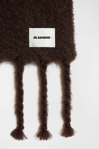 Long handknit wool and mohair scarf with Jil Sander+ logo label Details - fringed hem detail - Jil Sander+ logo label stitched at bottom - 73% mohair 24% wool 3% polyamide - made in Spain - StyleID: J40TE0132J40041204 Care - dry clean only - iron with care