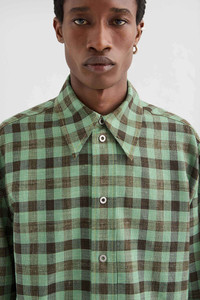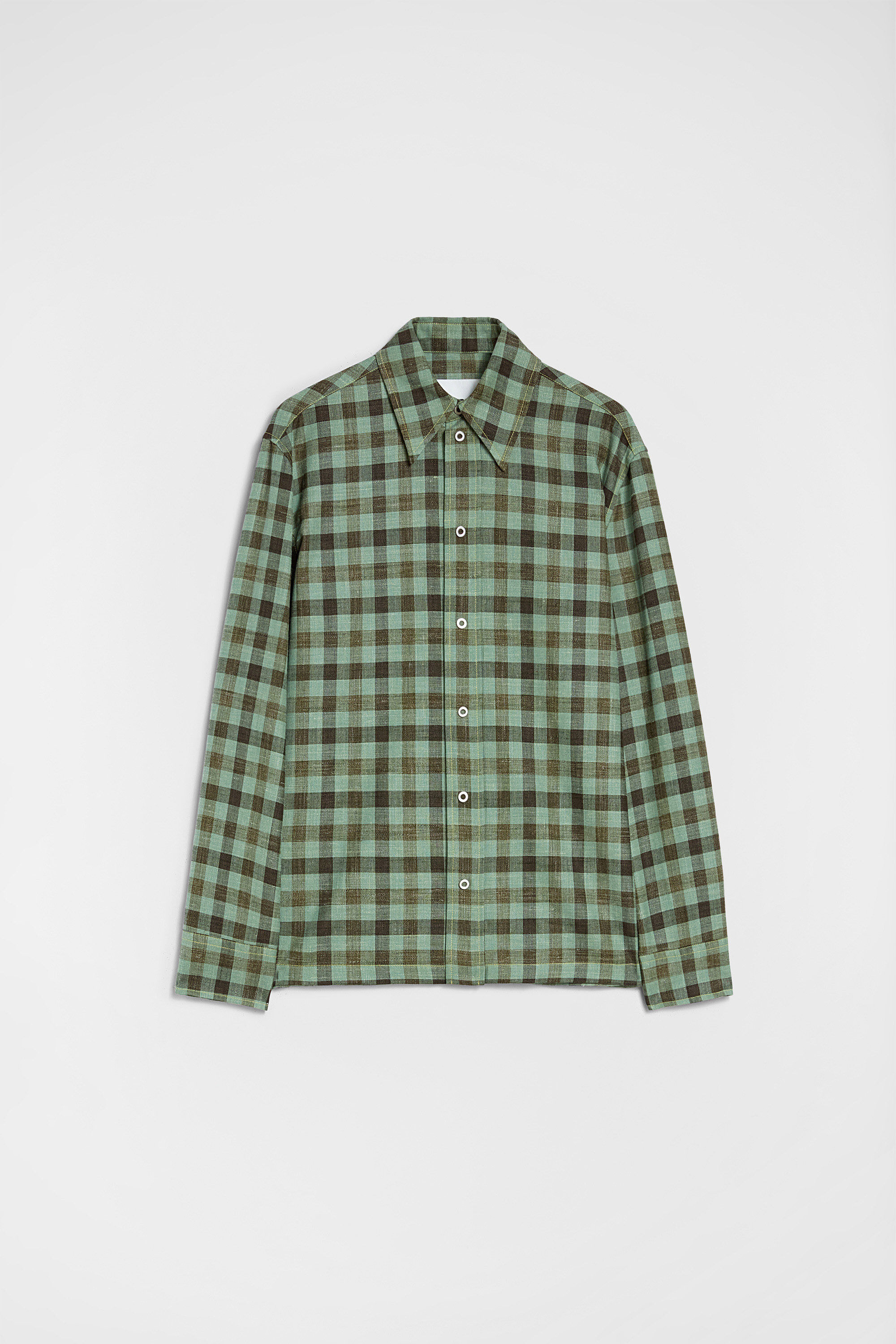 Long-sleeved fine wool shirt with metal button closure and check print Details - regular and straight fit - dropped shoulders - classic collar - centre-front snap button closure - classic yoke - one-pleat sleeve with one-button cuff - fine wool with check print - 35% wool 23% viscose-rayon 22% silk 20% linen - made in Italy - StyleID: J22DL0338J40251362 Care - dry clean only - iron with care Fit - model is 187cm/6'1" and is wearing a collar size 40 - Please note that the physical label of the item will show the Italian size