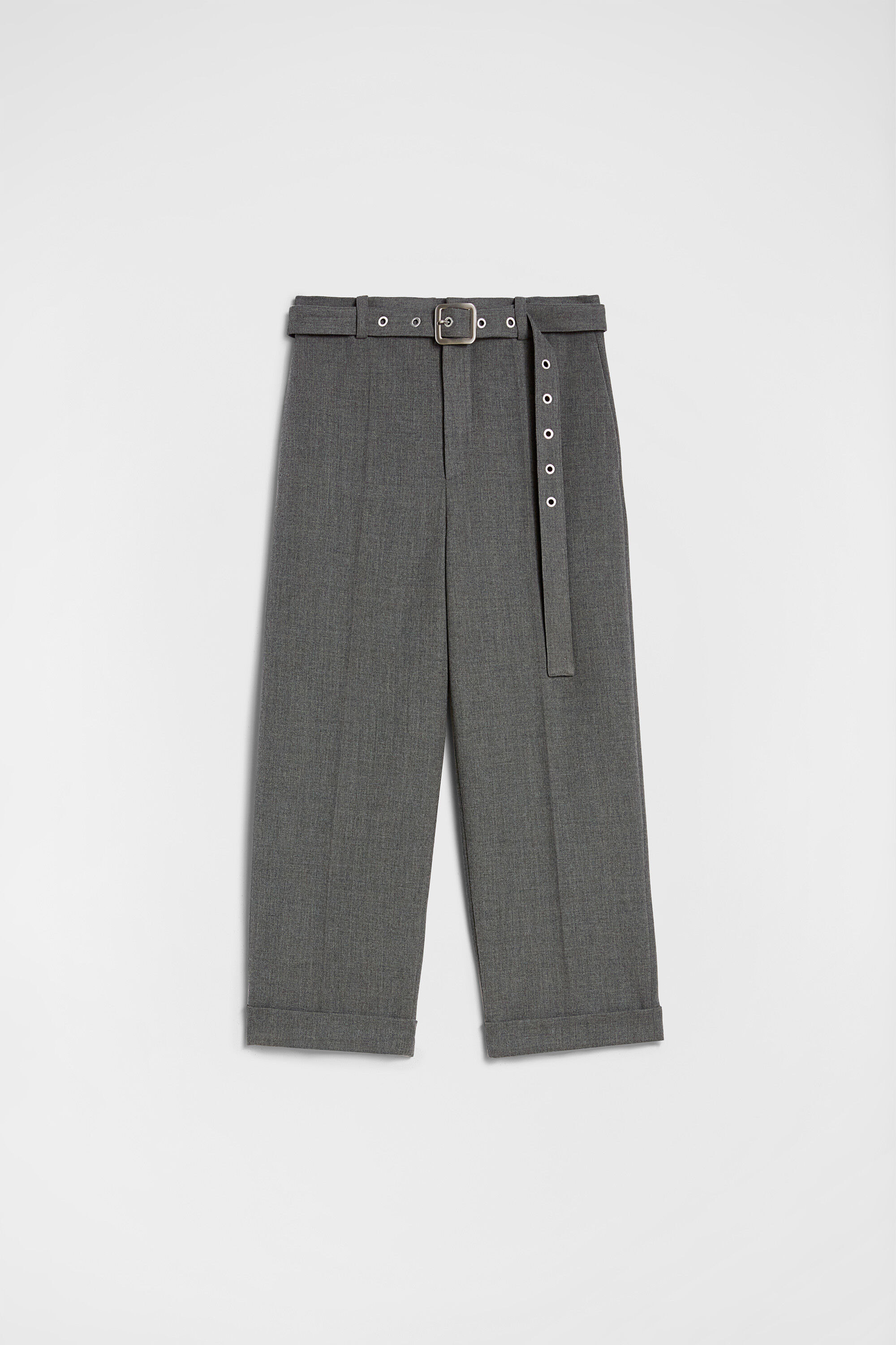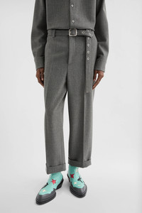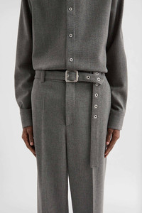 Straight-leg wool canvas trousers with roll-up hems and detachable belt Details - relaxed fit - dropped crotch and regular waist - zip fly and hook closure - detachable belt with metal buckle and metal stud application - side-seam pockets - back welt pockets - viscose half-lining and cotton pocket lining - wool canvas - 100% wool - made in Italy - StyleID: J22KA0230J41557030 Care - dry clean only - iron with care Fit - model is 187cm/6'1" and is wearing a size 46 IT - Please note that the physical label of the item will show the Italian size