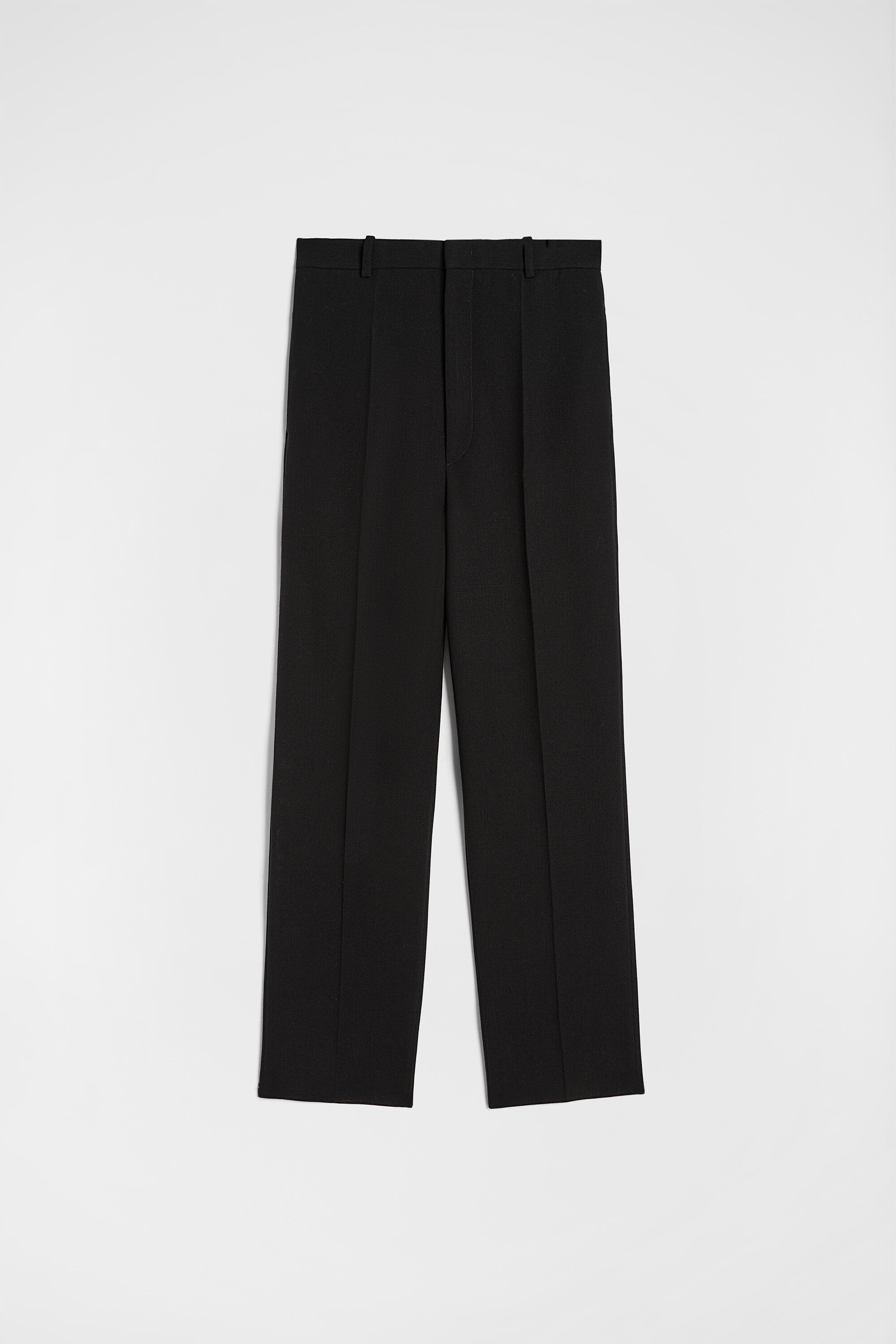 High-waisted wool canvas trousers with pressed creases Details - straight fit and leg - slightly low crotch and high waist - zip fly and hook closure - belt loops - side-seam pockets - back welt pockets - viscose half-lining and cotton pocket lining - wool canvas - 100% wool - made in Italy - StyleID: J21KA0280J41557001 Care - dry clean only - iron with care Fit - model is 187cm/6'1" and is wearing a size 48 IT - Please note that the physical label of the item will show the Italian size