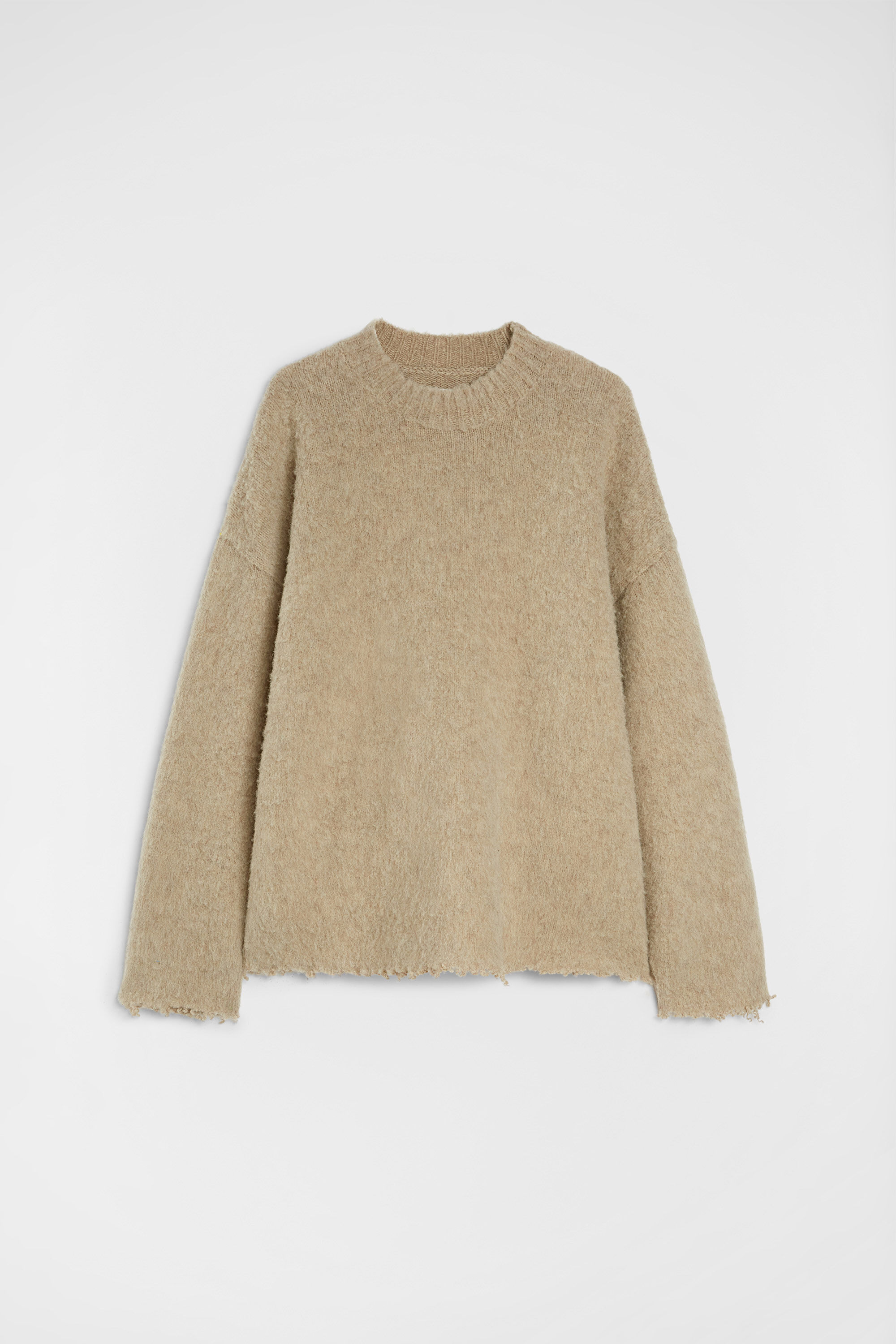 Long-sleeved brushed wool sweater with frayed hem and cuffs Details - oversized fit - dropped shoulders - brushed Shetland knit wool - 100% wool - made in Italy - StyleID: J47GP0197J14792218 Care - dry clean only - iron with care Fit - model is 187cm/6'1" and is wearing a size 48 IT - Please note that the physical label of the item will show the Italian size