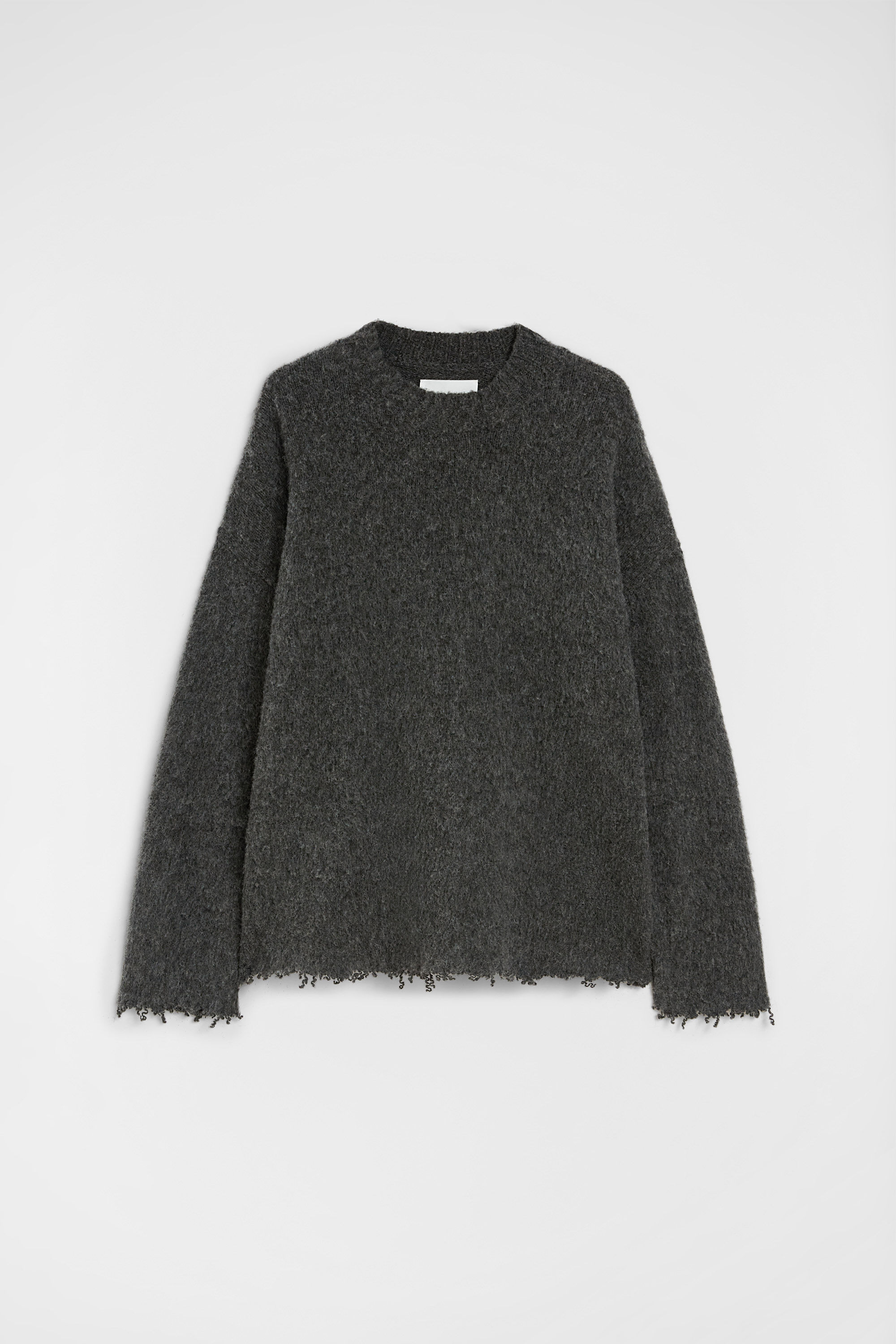 Long-sleeved brushed wool sweater with frayed hem and cuffs Details - oversized fit - dropped shoulders - brushed Shetland knit wool - 100% wool - made in Italy - StyleID: J47GP0197J14792025 Care - dry clean only - iron with care Fit - model is 187cm/6'1" and is wearing a size 48 IT - Please note that the physical label of the item will show the Italian size