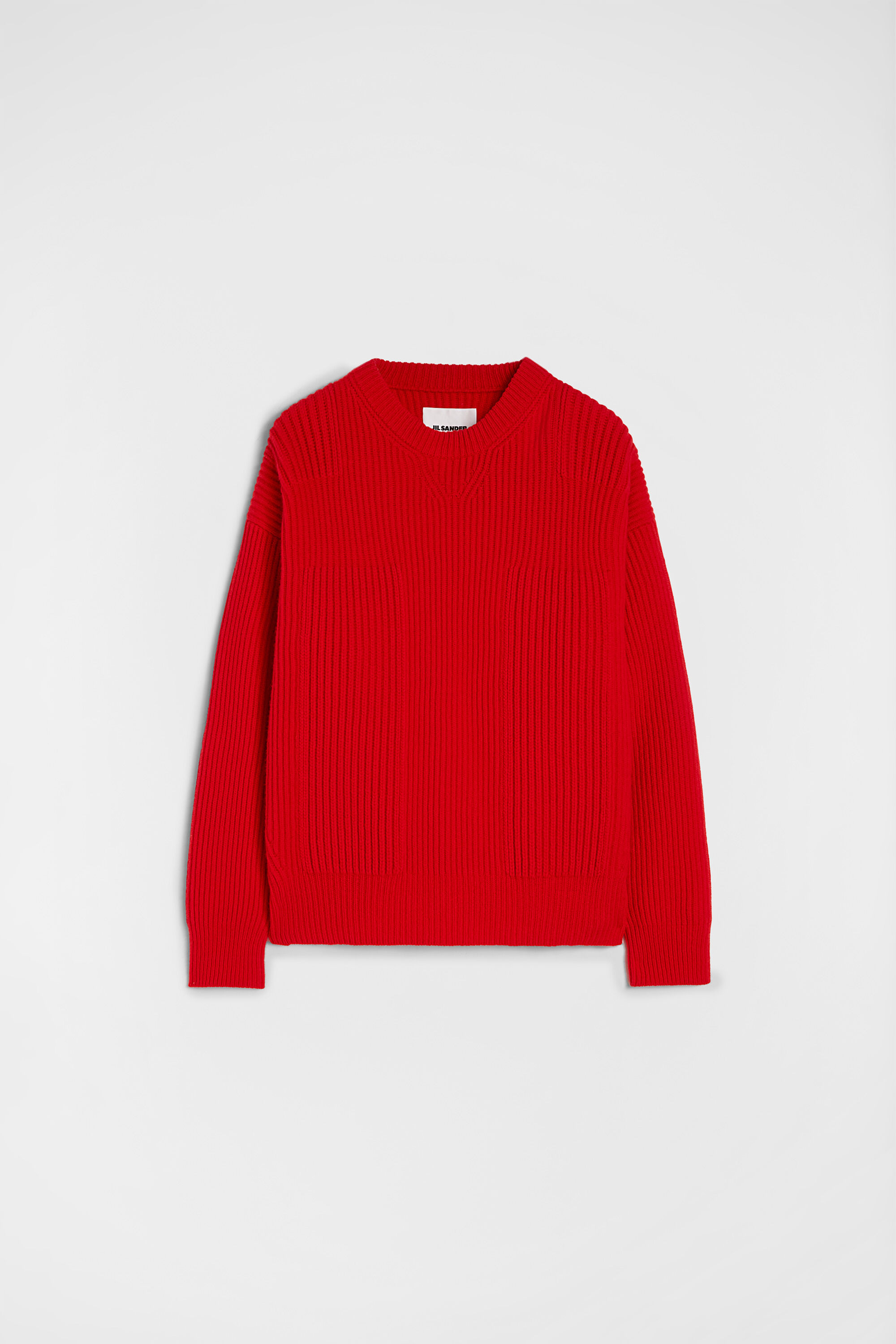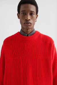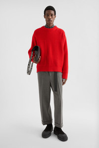 Long-sleeved merino wool sweater with rib-neck detail and graphic block stitch Details - oversized fit - dropped shoulders - ribbed neck, hem and cuffs - chunky-knit merino wool with graphic block stitch - 100% wool - made in Italy - StyleID: J22GP0252J14784626 Care - dry clean only - iron with care Fit - model is 187cm/6'1" and is wearing a size 48 IT - Please note that the physical label of the item will show the Italian size