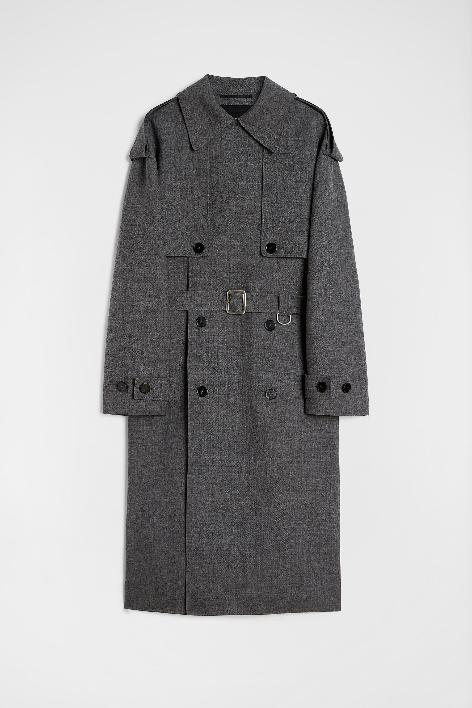 Straight-fit double wool gabardine trench coat with matching belt with metal buckle Details - regular and straight fit - open pressed rever and collar with collarstand and hook and eye closure - double-breasted with front button closure - two welt pockets - storm flap and flying back yoke - adjustable cuffs and shoulder button tabs - centre-back vent - double splittable wool gabardine with viscose lining - 99% virgin wool 1% silk - made in Italy - StyleID: J21SW0072J40289025 Care - dry clean only - iron with care Fit - model is 187cm/6'1" and is wearing a size 50 IT - Please note that the physical label of the item will show the Italian size