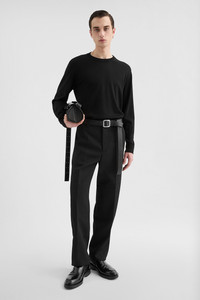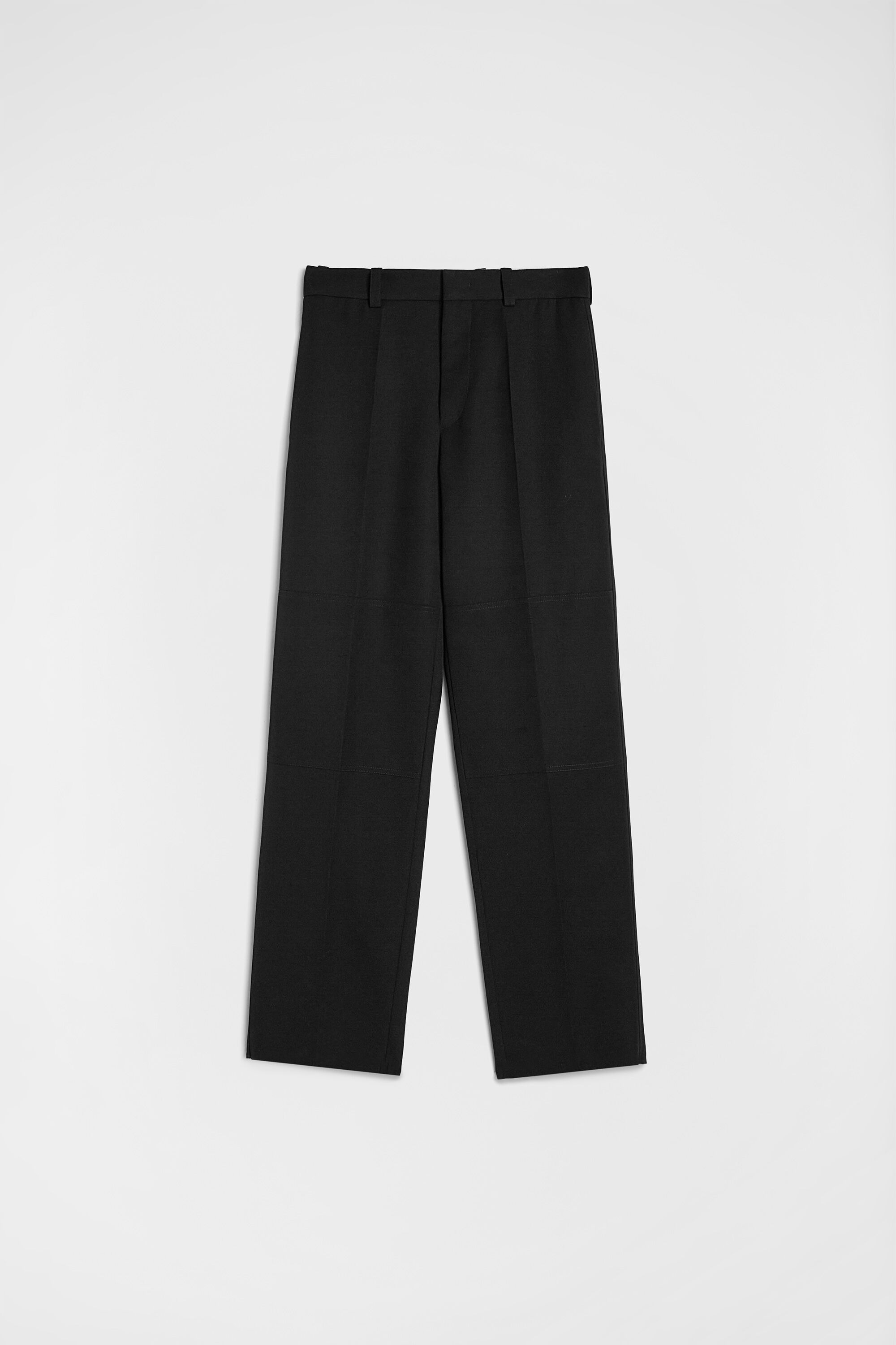 Straight-leg wool gabardine trousers with stitching detail on knee Details - relaxed fit - slightly dropped crotch and regular waist - zip fly and hook closure - side-seam pockets - back welt pockets - pressed creases - viscose half-lining and cotton pocket lining - sharp wool gabardine - 100% wool - made in Italy - StyleID: J23KA0107J40002001 Care - dry clean only - iron with care Fit - model is 187cm/6'1" and is wearing a size 46 IT - Please note that the physical label of the item will show the Italian size