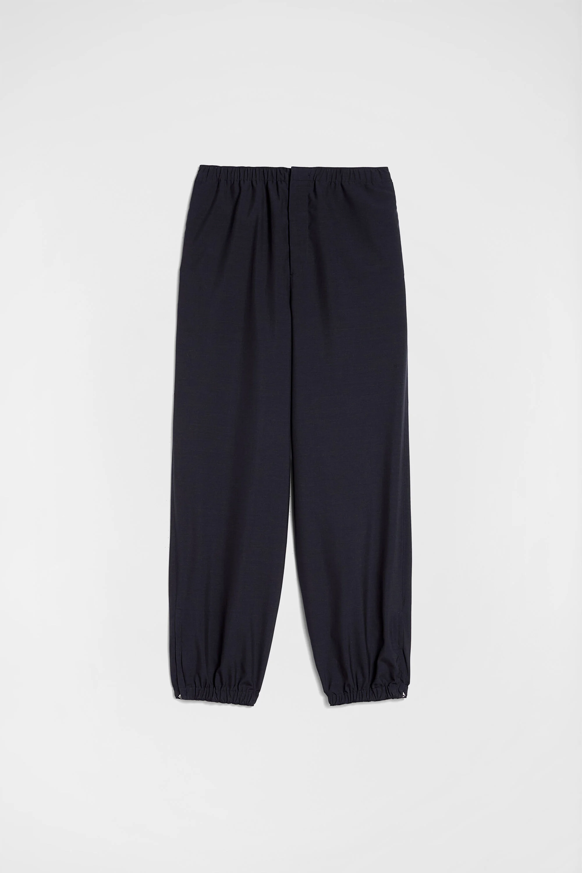 Wool poplin trousers with elasticated hem with zip opening Details - relaxed fit - dropped crotch and regular waist - elasticated waistband with zip fly and hook closure - side-seam pockets and back welt pockets - cotton pocket lining - wool poplin - 100% virgin wool - made in Italy - StyleID: J22KA0328J40249401 Care - dry clean only - iron with care Fit - model is 187cm/6'1" and is wearing a size 46 IT - Please note that the physical label of the item will show the Italian size