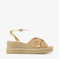 Gold Raffia Wedge Sandals