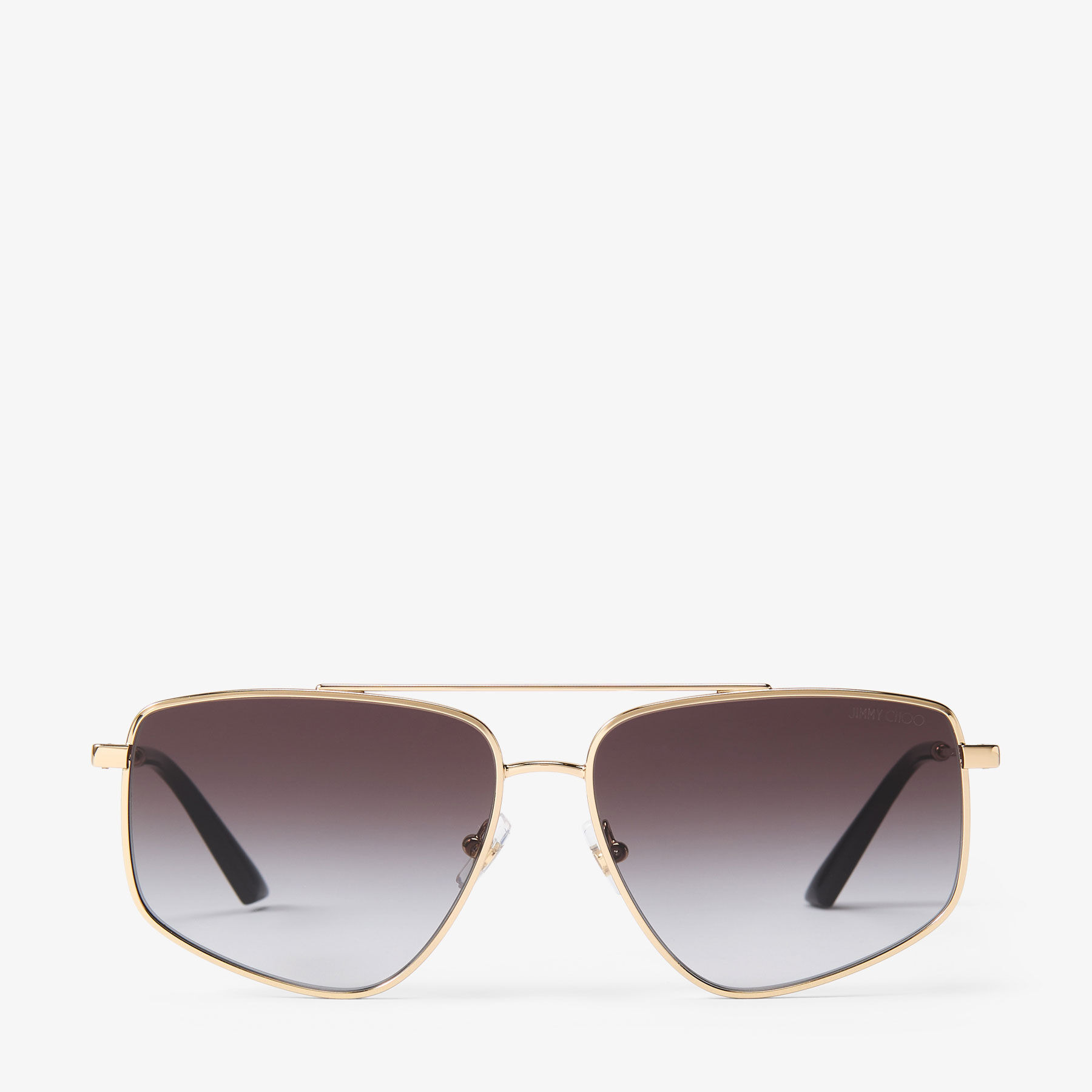 Details, Care & Fit The Alyssa sunglasses are a modern update to a classic avaiator silhouette. They feature brown gradient shaded lenses and are complimented by our signature Jimmy Choo logo. - Acetate - Bio-nylon lenses - Grey gradient shaded lenses - Metal - Aviator frame - Jimmy Choo logo - 100% UVA and UVB protection - Presented with a Jimmy Choo case and cleaning pouch - Lens width: 5.8cm - Bridge length: 1.4cm - Temple length: 14cm - Made in Italy